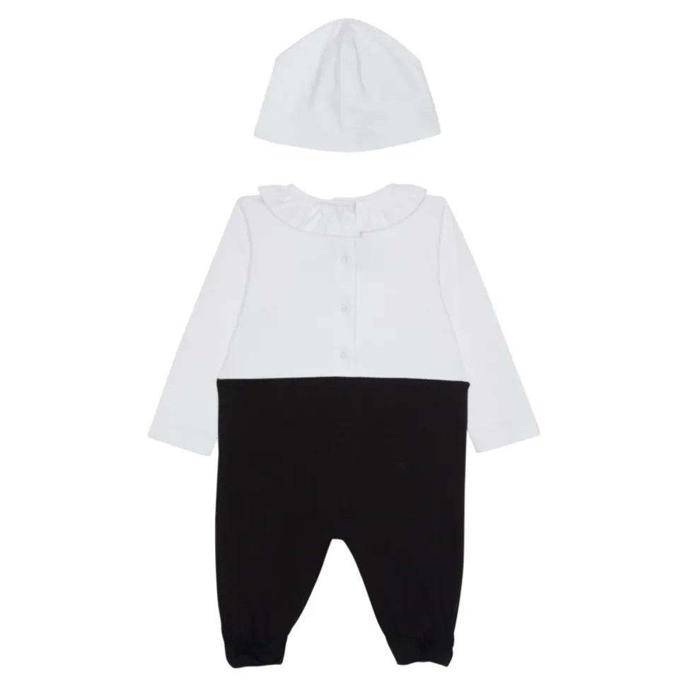 2-delige babyset Bijpassende romper en muts Ronde gerimpelde hals Vintage Balmain-logo’s Lange mouwen Contrasterende onderkant 2 nepzakken met knopen Drukknopen Hoofdmateriaal: 100% katoen Gemaakt in Portugal Artikel: BWB00AZ0082