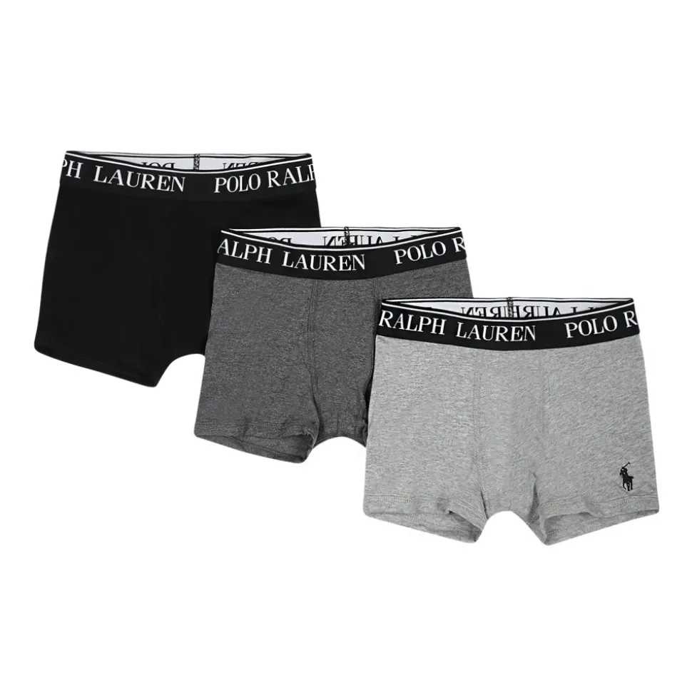 Kleur: MulticolorBeschrijving: Multicolor set bestaande uit drie boxers, twee grijze boxers en een zwarte boxer, met logo-elastische tailleband. De lichtblauwe boxer is versierd met ankers overal.