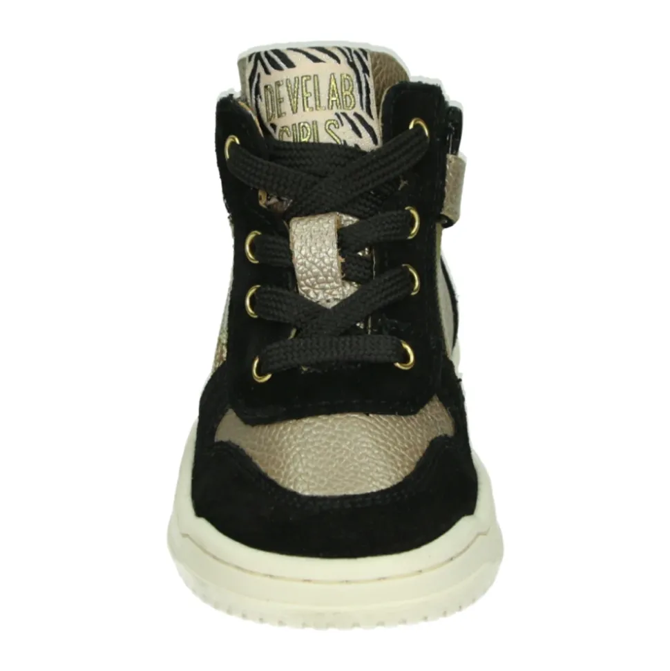 De Develab 41922 Mid Sneaker combineert een bovenwerk van leer en suède met een uitneembare binnenzool voor aanpasbaar comfort. Het halfhoge ontwerp en de rubberen zool maken hem geschikt voor dagelijks gebruik. Belangrijkste kenmerken: Multicolor | Zwart | Leer en suède | Uitneembare binnenzool | Rubberen zool | Halfhoog silhouet | Bovenwerk met patroon (dessin) | Afmetingen & pasvorm: Breedte 3 | Samenstelling & onderhoud: Leer | Suède | Rubber | Veeg schoon met een vochtige doek. Gebruik indien nodig leerverzorgingsproducten. Niet in de machine wassen.