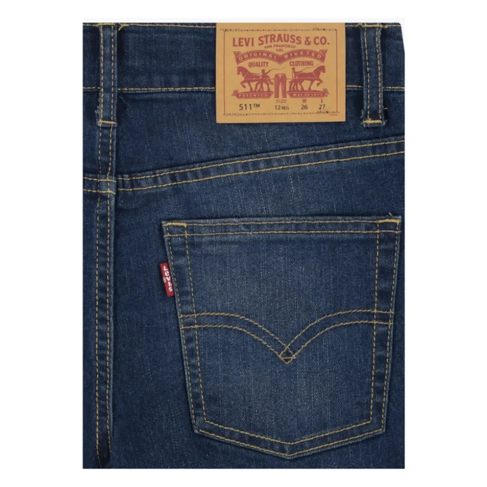 Leverancierscode: 9E2006RUSHMORE_ Levi’s 511 slim fit jeans voor kinderen, een iconisch model dat traditie en moderniteit combineert. Gemaakt van stretchdenim met 80% katoen, 19% polyester en 1% elastaan, biedt het optimaal comfort, bewegingsvrijheid en weerstand tegen dagelijks gebruik. Het ontwerp heeft een slim fit met rechte pijpen, normale taille en volledige lengte, ideaal voor casual en veelzijdige looks. De mediumblauwe denimkleur met lichte nuances geeft een moderne uitstraling en is gemakkelijk te combineren met sweatshirts, overhemden en t-shirts. Gekenmerkt door een ritssluiting en knoopsluiting, 5 functionele zakken en contraststiksels, wordt het verrijkt door het klassieke Levi’s embleem op de achterkant, een symbool van authenticiteit en tijdloze stijl. Pasvorm: Slim fit Lijn: Recht Lengte: Lang Kleur: Blauwe denim Samenstelling: 80% katoen, 19% polyester, 1% elastaan Zakken: 5 klassiek Sluiting: Ritssluiting en knoop Wassen: Machinewas op 30° Een essentieel kledingstuk, perfect voor school en vrije tijd, dat de Levi’s stijl vertegenwoordigt in een juniorversie.