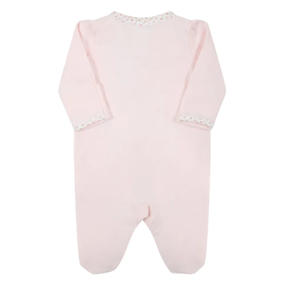 Kleur: RozeBeschrijving: Roze rompertje, met V-hals, lange mouwen, voetjes en drukknoopsluiting, aan de voorkant en tussen de benen. Het is versierd met een ponylogo op de borst en rozen aan de voorkant. Details: 100% katoen. Machinewas op 30°C.
