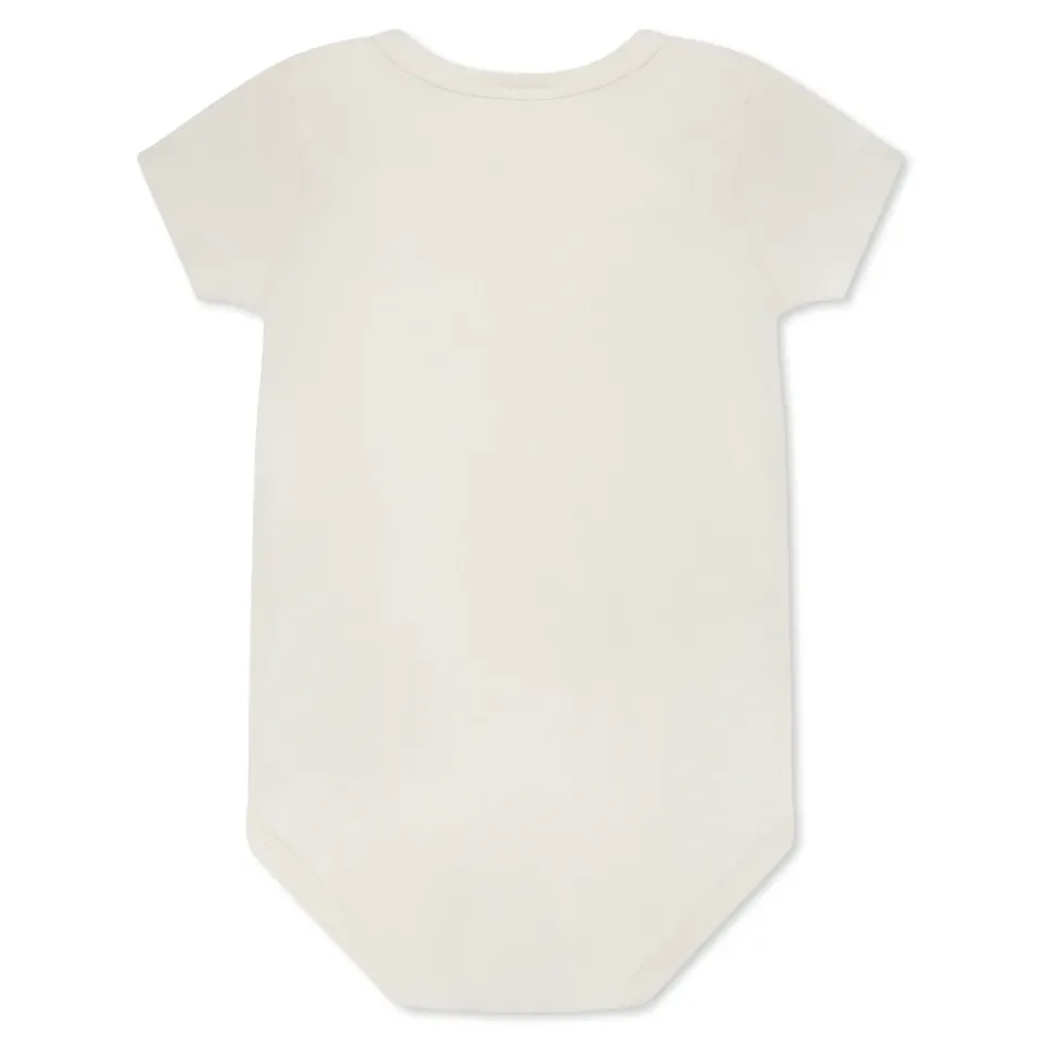 Kleur: MulticolorBeschrijving: Multicolor romper, van katoen, bestaande uit drie rompers, lichtblauw, wit en lichtblauw gestreept; met korte mouwen, ronde hals en drukknoopsluiting tussen de benen. Ze zijn versierd met een logopatch op de borst en mouw.Details: 100% katoen. Machinewas op 30°C.