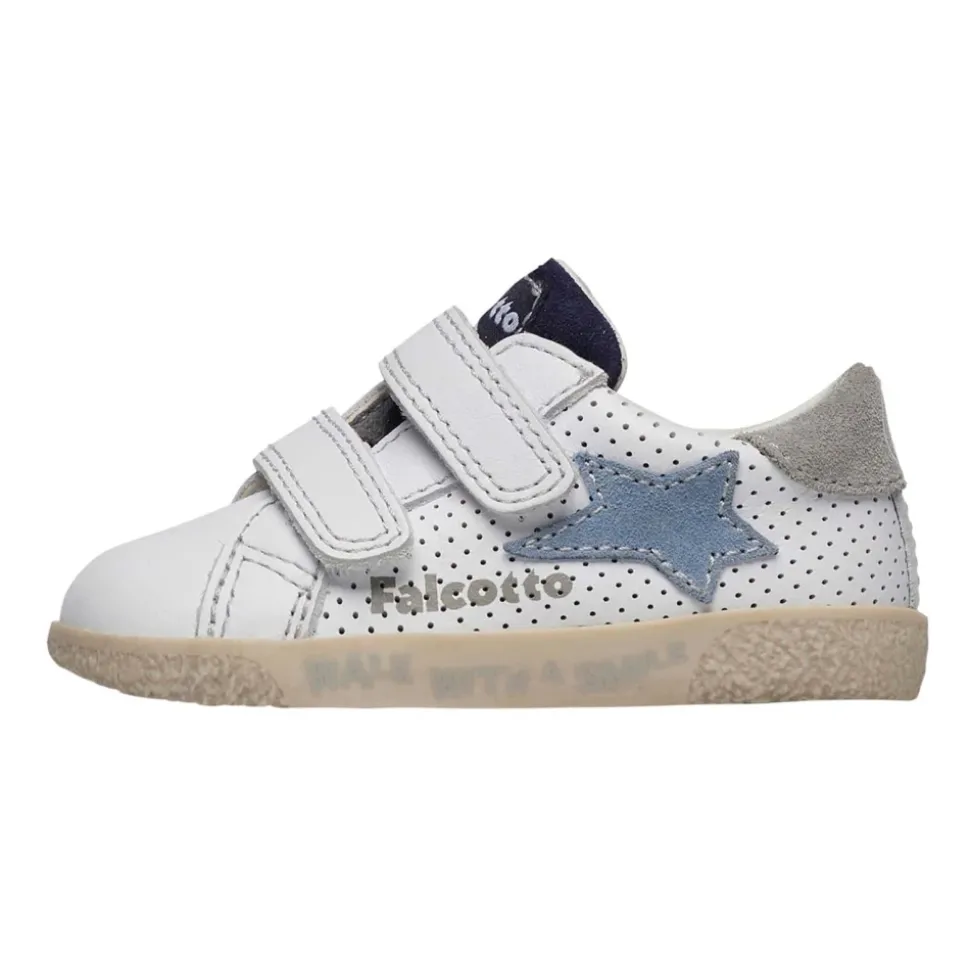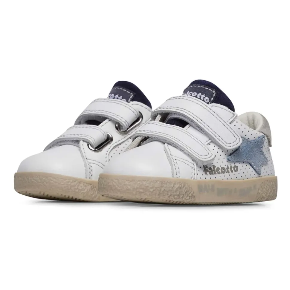 Falcotto ALNOITE 2 VL. sneakers combineren een bovenwerk van leer en velours met een praktische klittenbandsluiting voor gemakkelijk aan- en uittrekken. Ze combineren een comfortabele, met leer gevoerde binnenzool met een rubberen zool voor betrouwbare grip tijdens het dagelijks gebruik. Belangrijkste kenmerken: Wit | Lichtblauw | Leer, Velours (Suède) | Antislip rubberen zool | leren constructie | Ademende leren voering | Klittenbandsluiting | Leren voering en binnenzool | Laag model | Velours details op de neus en hiel | Samenstelling & onderhoud: Leer (bovenwerk, voering, binnenzool) | Velours (suède) | Rubber (loopzool)