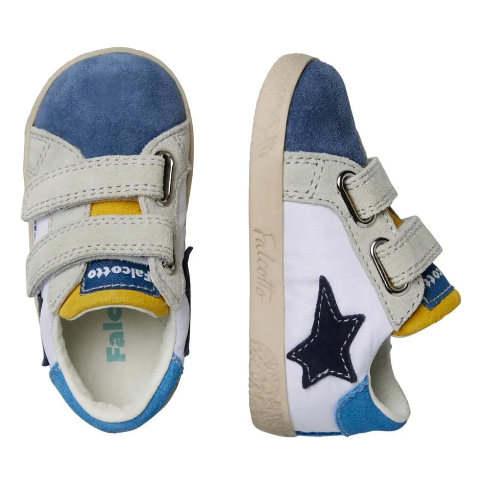 Falcotto Alnoite 2 VL combineert suède en stoffen bovenwerk met een leren voering voor comfortabel dagelijks gebruik. De klittenbandsluiting maakt ze gemakkelijk aan te trekken en aan te passen voor een stevige pasvorm. Belangrijkste kenmerken: Multicolor | Wit | Lichtblauw | Suède | Stof | Antislip rubberen buitenzool | Klittenbandsluiting | Leren voering | Leren binnenzool | Laag model | Ronde neus | Samenstelling & verzorging: Bovenkant: Suède, Stof | Voering: Leer | Binnenzool: Leer | Buitenzool: Rubber | Breng voor gebruik een beschermende spray aan. Veeg schoon met een zachte doek.