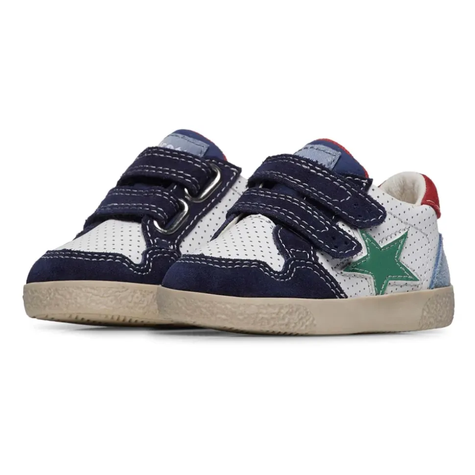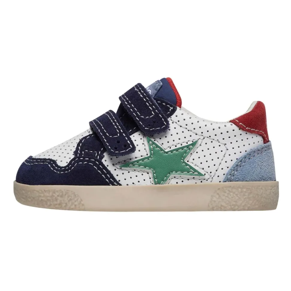 Falcotto Alnoite Low 2 Vl combineert suède en leer met een veilige klittenbandsluiting voor comfortabele, gemakkelijk te dragen sneakers, ideaal voor dagelijks gebruik. Belangrijkste kenmerken: Multicolor | Wit | Blauw | Suède en leer | Antislip rubberen zool | Leren voering en binnenzool voor comfort | Klittenbandsluiting | Gemakkelijk aan en uit te trekken | Contrasterende leren panelen | Suède neus en hiel | Sterapplicatie | Samenstelling & verzorging: Bovenkant: Leer en suède | Voering: Leer | Binnenzool: Leer | Buitenzool: Rubber