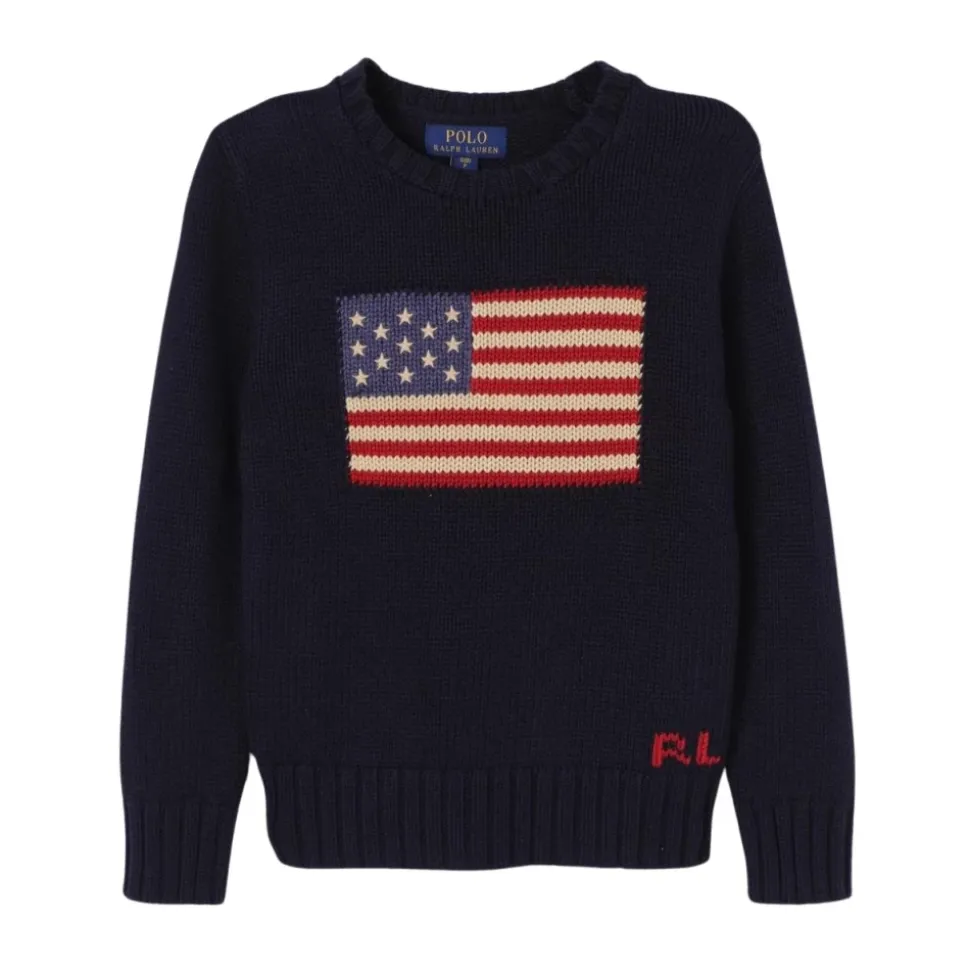 De Polo Ralph Lauren Amerikaanse vlag gebreide trui is een tijdloos kledingstuk dat comfort en stijl combineert. Deze trui is gemaakt van hoogwaardige materialen en is perfect om warm te blijven met behoud van een klassieke look. Belangrijkste kenmerken: Navy | Blauw | Iconisch Polo Ralph Lauren logo |