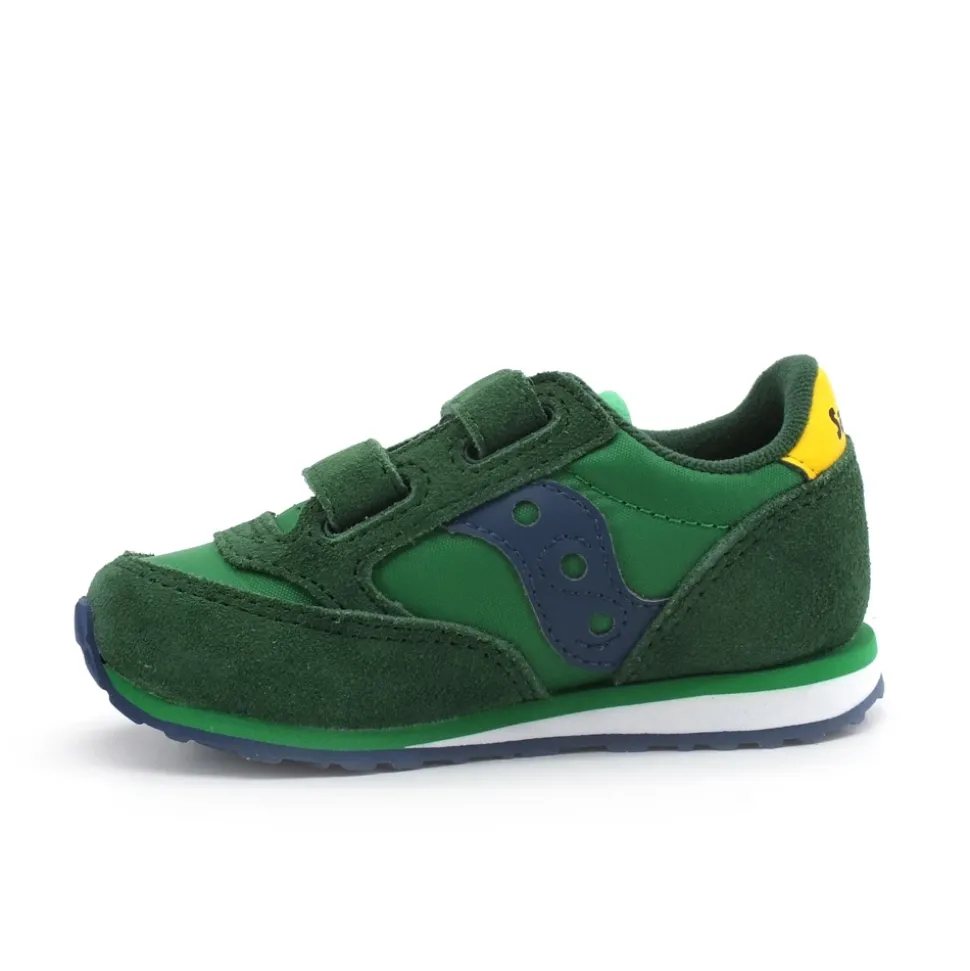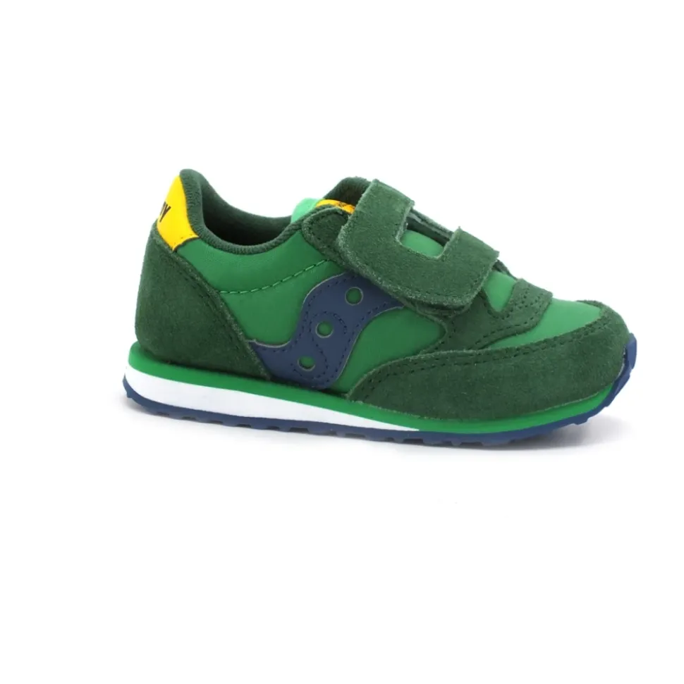 Saucony Baby Jazz Hook-and-Loop sneakers combineren een zacht leren bovenwerk met een gemakkelijke aan- en uittrekbare sluiting voor dagelijks gebruik. Ontworpen voor actief gebruik, ze bieden een eenvoudige sluiting en een rubberen zool voor betrouwbare grip. Belangrijkste kenmerken: Groen | Geel | Blauw | Leer | Rubberen buitenzool voor grip | Klittenbandsluiting | Ronde neus | Samenstelling & verzorging: Bovenkant: Leer | Voering: Textiel | Buitenzool: Rubber | Afnemen met een vochtige doek. Gebruik leer reiniger/conditioner voor het bovenwerk. Niet in de wasmachine.