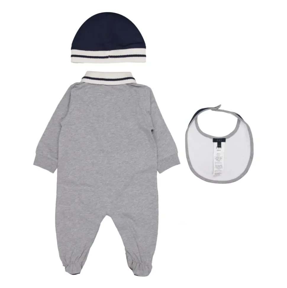 Kleed je kleintje in stijl met deze schattige baby set van Fay. Gemaakt van een luxe kasjmier wolmix, bevat het een comfortabele romper, een schattige muts en een handige slab, allemaal met de iconische Fay logo`s. Belangrijkste kenmerken: Grijs | Kasjmier wolmix | Gepersonaliseerde knopen aan de voorkant voor gemakkelijk aankleden | Iconische Fay logo`s | Afmetingen en pasvorm: Normale pasvorm | Samenstelling en onderhoud: Kasjmier wolmix | Uitsluitend chemisch reinigen
