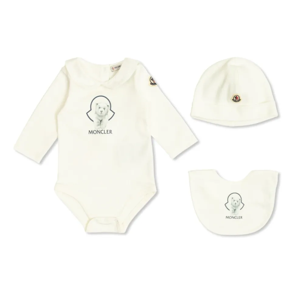 DE MONCLER ENFANT BABY SET is een ware ode aan eenvoud en verfijning, en biedt tijdloze elegantie in de vorm van een sneeuwwitte romper. Het zorgvuldig op maat gemaakte model met lange mouwen wordt aangevuld met handige drukknopen in het kruis en een praktische sluiting aan de achterkant, wat zorgt voor gemakkelijk aankleden, zelfs voor de meest veeleisende verzorgers. Het materiaal dat voor de romper wordt gebruikt, is voortreffelijk, zacht katoen – ideaal voor de gevoelige huid van een baby. De centrale “MONCLER”-print en het subtiele, geborduurde embleem op de schouder benadrukken subtiel de hoge klasse van het product en de zorgvuldige afwerking die typerend is voor premium goederen. WAAROM DIT PRODUCT KIEZEN? * Gemaakt van de hoogste kwaliteit, natuurlijk katoen – comfort en veiligheid voor uw kind. * Minimalistisch, universeel ontwerp met een exclusief logo. * Praktische details – gemakkelijk aankleden, eenvoudige verzorging. * Handtekening van de bekende ontwerper Moncler Enfant, die stijl met functionaliteit combineert. * De tijdloze witte kleur – een uitstekende basis voor elke outfit.