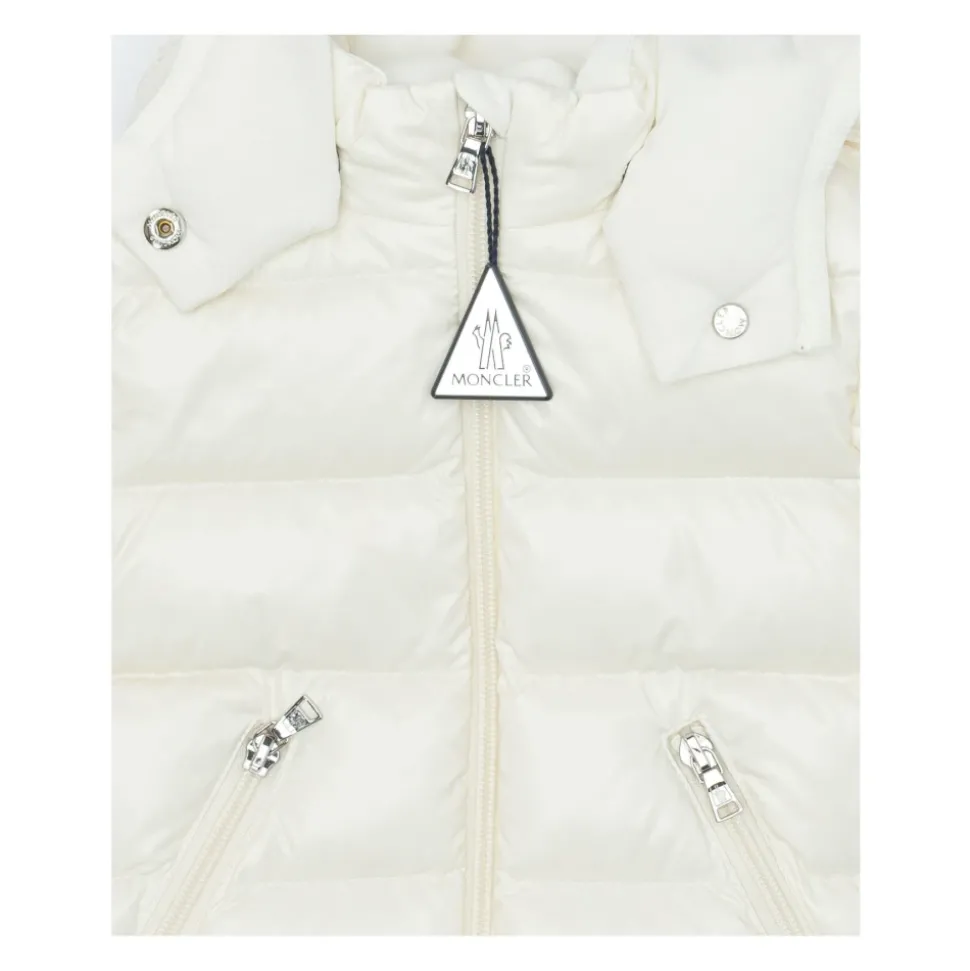 De Moncler Bady Jacket combineert glanzend nylon laqué met lichtgewicht donsisolatie voor betrouwbare warmte en eenvoudige layering. Het is ontworpen voor veelzijdig gebruik bij koud weer met kenmerkende quilting en praktische details. Belangrijkste kenmerken: Wit | Nylon | Donsisolatie voor warmte | Lichtgewicht constructie | Gewatteerde constructie houdt warmte vast | Afneembare capuchon | Tweewegritssluiting | Zijzakken met rits | Opgestikte zak op de mouw | Verstelbare manchetten | Boudin quilting | Opstaande kraag | Heuplengte zoom | Logo patch op de mouw | Afmetingen & pasvorm: Valt normaal qua maat (regular fit) | Samenstelling & onderhoud: Buitenlaag: 100% Nylon | Voering: 100% Nylon | Vulling: 90% Dons, 10% Veren | Machinewas max. 30°C (mild proces) of professionele stomerij; niet bleken; niet in de droogtrommel; strijken max. 110°C zonder stoom; professionele natreiniging (mild proces) aanbevolen; plat drogen; apart wassen; verwijder afneembare accessoires voor het wassen.