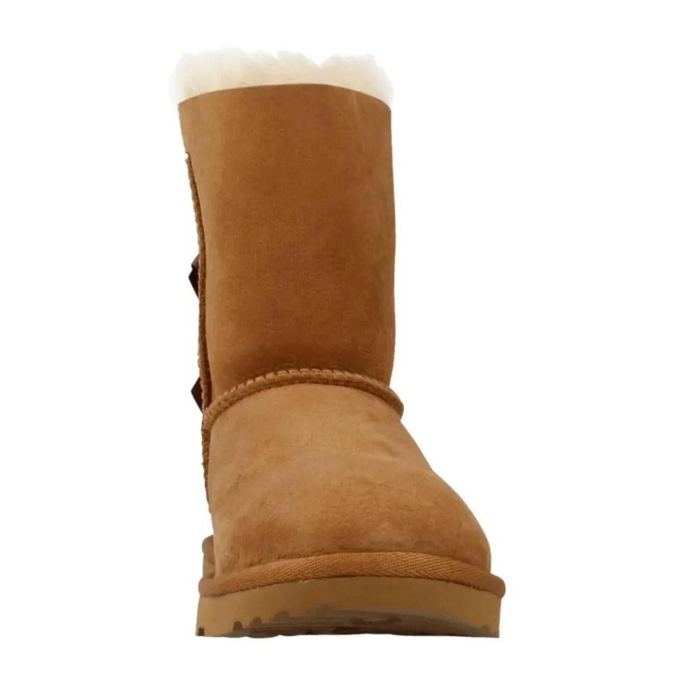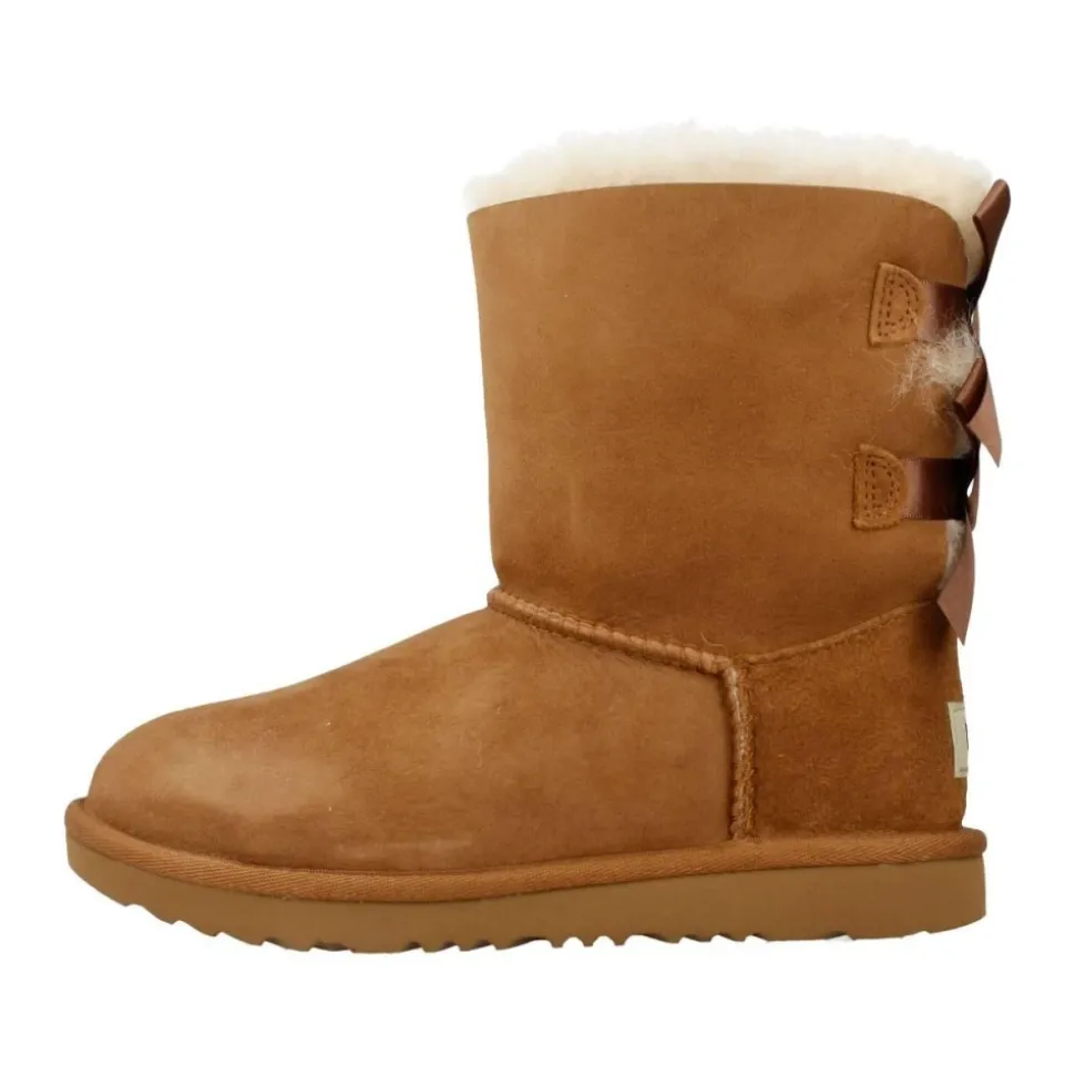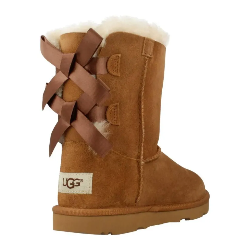 UGG Bailey Bow II combineert de klassieke warmte van schapenvacht van het merk met decoratieve satijnen strikken voor een knusse, alledaagse laars. Het ontwerp combineert een zachte Twinface bovenkant met een lichtgewicht Treadlite-buitenzool voor comfortabel dragen en grip. Belangrijkste kenmerken: Bruin | Kastanje | Schapenvacht | Voorbehandeld om water en vlekken af te stoten | Lichtgewicht, gripvaste Treadlite-buitenzool | Voetbed van schuim | UGGpure wollen binnenzool | Slip-on model | Vaste satijnen strikken langs de achterkant van de schacht | Ronde neus | Suède hielstuk | Schachthoogte 15,24 cm | Afmetingen & pasvorm: Schachthoogte: 15,24 cm | Samenstelling & verzorging: Twinface schapenvacht bovenkant | Suède hielstuk | UGGpure wollen binnenzool | Voetbed van schuim | Treadlite by UGG-buitenzool | Polyester/nylon binding | Satijnen strikken | Voorbehandeld om vocht en vlekken af te stoten.