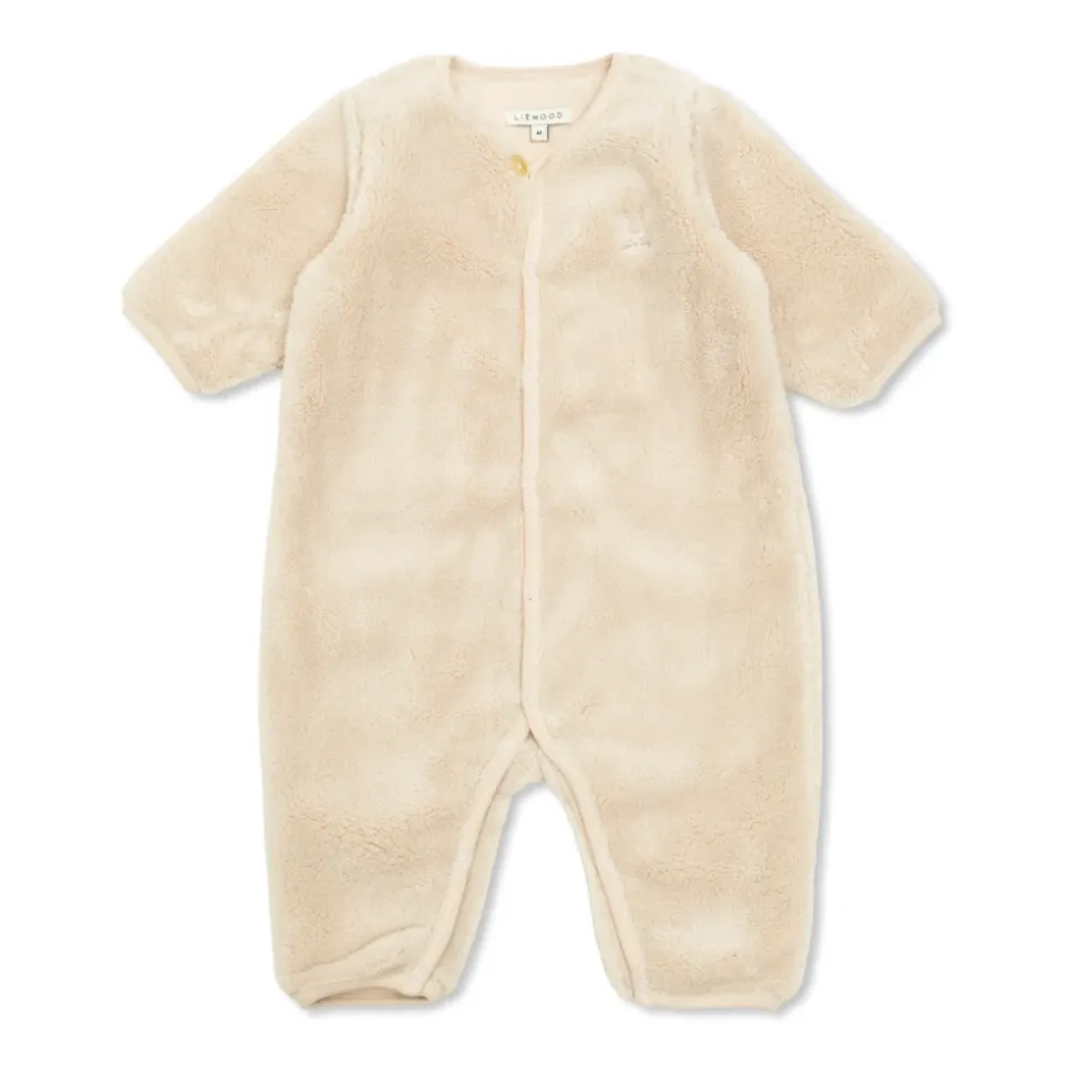 De Liewood Bailey Pile Jumpsuit combineert een minimalistisch silhouet uit één stuk met zacht poolfleece voor betrouwbare warmte en gemakkelijk aankleden. Het ontwerp is gericht op zacht comfort en een strakke, ingetogen look. Belangrijkste kenmerken: Zandkleurig | Poolfleece | Warme, isolerende poolfleece | Zachte, dichte textuur voor comfort | Drukknoopsluiting aan de voorkant | Lichte knoop in de halslijn voor gemakkelijk aankleden | Silhouet uit één stuk | Minimalistisch design met strakke lijnen | Subtiel geborduurd logo in de vorm van een kitten op de borst | Samenstelling & onderhoud: Buitenkant: 100% polyester | Voering: 100% katoen | Machinewas 30°C. Sluit rits/klittenband/knopen voor het wassen. Niet in de droogtrommel. Niet strijken. Niet bleken.
