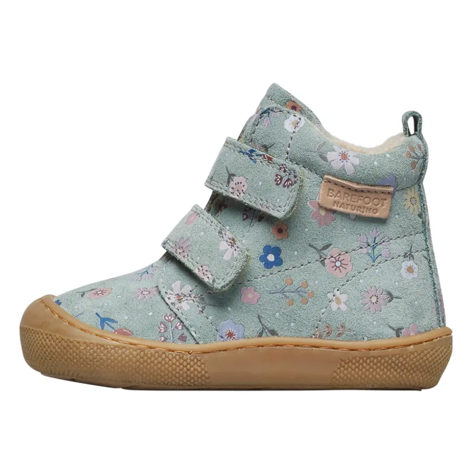 Barefoot boots with above-ankle design, made of soft brushed nappa leather. Easy to wear thanks to the double strap closure, they are lined in curly effect wool and complemented by non-slip rubber bottom with reinforced toe.