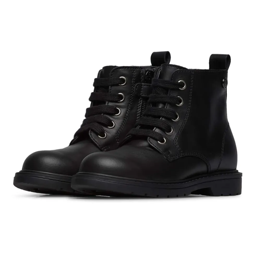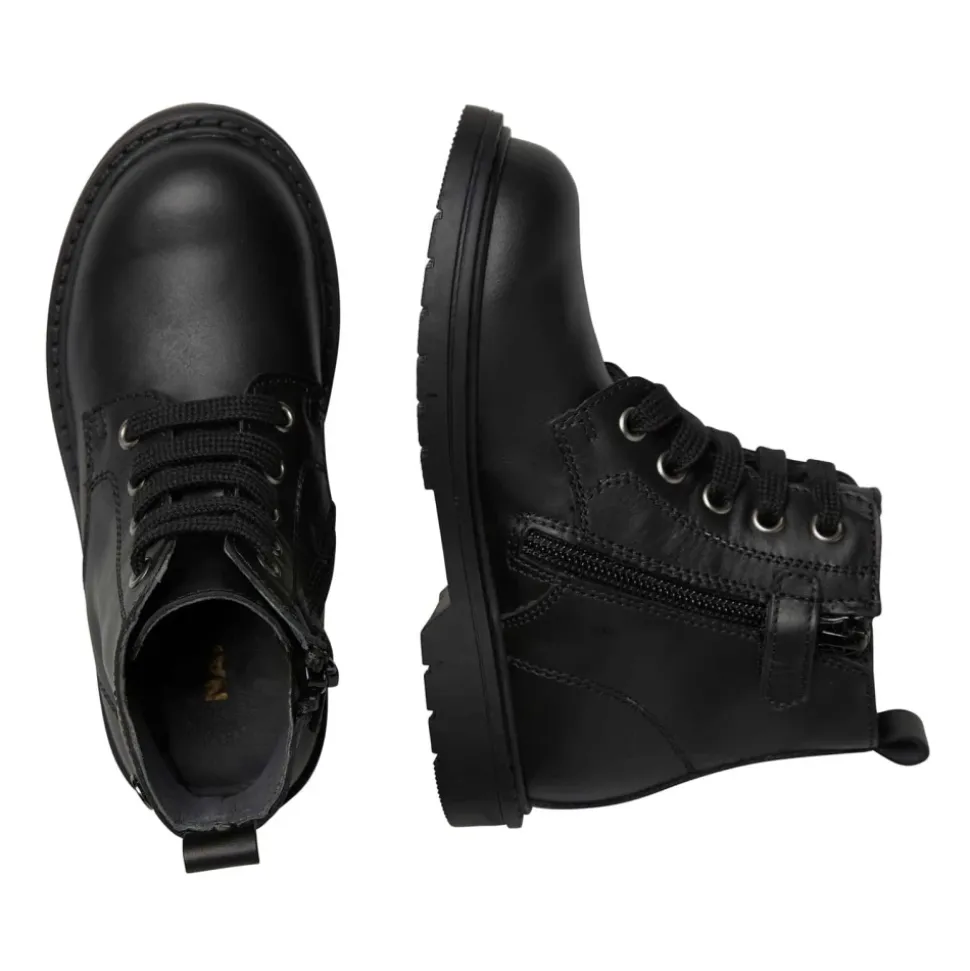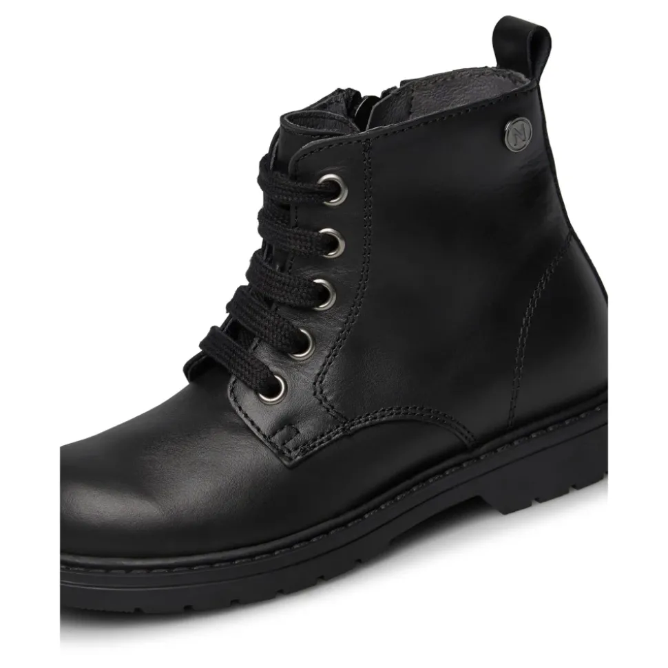 Naturino Barnett 2 enkellaarsjes combineren een zacht kalfsleren combat silhouet met een praktische interne rits voor gemakkelijk aan- en uittrekken. De constructie boven de enkel en de antislip rubberen zool maken ze zeer geschikt voor kouder weer. Belangrijkste kenmerken: Zwart | Kalfsleer | Antislip rubberen zool | Vetersluiting | Interne rits | Leren voering | Combat laars silhouet | Hoogte boven de enkel | Zachte kalfsleren afwerking | Samenstelling & verzorging: Kalfsleer | Leren voering | Rubberen zool