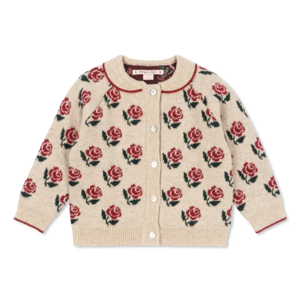 De Konges Sløjd Belou Knit Cardigan combineert een zachte wolmix met een delicaat rozenmotief voor lichtgewicht warmte en verfijnde alledaagse kleding. Het stuk valt op door zijn gebreide textuur en fijne knoopsluiting. Belangrijkste kenmerken: Beige | Rood | Wolmix | Warm | Zacht | Ademend | Knoopsluiting aan de voorkant | Knopen van parelmoer | Geribbelde boorden voor structuur | Ronde kraag | Lange mouwen | Bloemenrozenmotief | Rode contrasterende biezen | Geribbelde zoom en manchetten | Afmetingen & pasvorm: Valt normaal qua maat | Samenstelling & verzorging: 60% wol, 40% acryl | Handwas