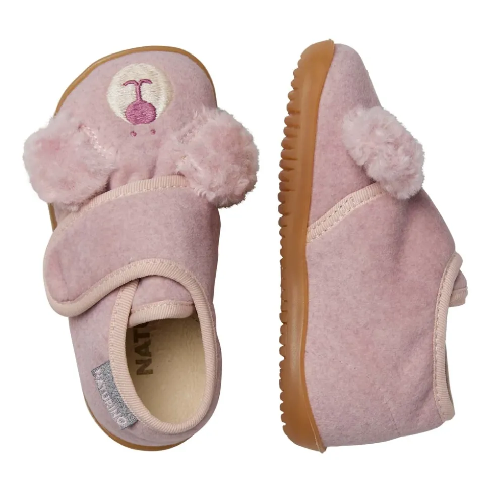Naturino BIDAIM Pantoffels combineren zachte stof met vilteffect met een speels teddybeerdetail voor comfortabel binnenshuis dragen. Ze zijn voorzien van een verstelbare riem, een leren binnenzool en een antislip rubber- en kurkzool voor veilig, de hele dag comfort. Belangrijkste kenmerken: Roze | Stof met vilteffect | Antislip rubberen en kurken buitenzool | Verstelbare riemsluiting | Leren binnenzool | Teddybeerapplicatie met 3D-oren op de neus | Vilteffect afwerking | Samenstelling & onderhoud: Buitenkant: Stof met vilteffect | Binnenzool: Leer | Buitenzool: Rubber en kurk mix | Intern materiaal: Textiel