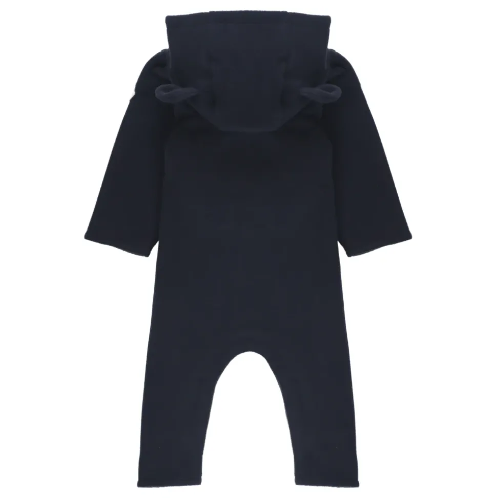 Kleed je kleine jongen in stijl met deze donkerblauwe Moncler Baby onesie. Voorzien van een capuchon, lange mouwen en een contrasterende kleur logo-patch op de linkermouw. De ritssluiting aan de voorkant en drukknopen aan de onderkant maken het aankleden gemakkelijk en snel. Op de voorkant is ook een contrasterend gekleurd geborduurd logo te zien voor extra charme.