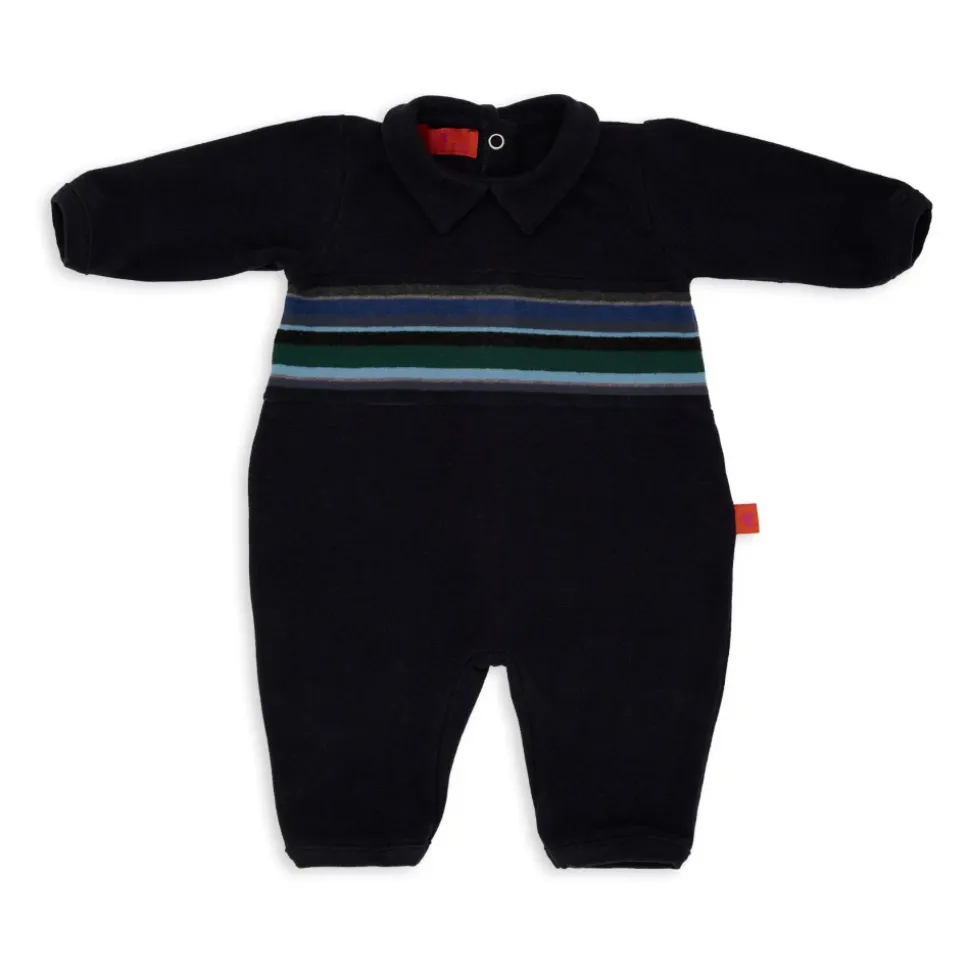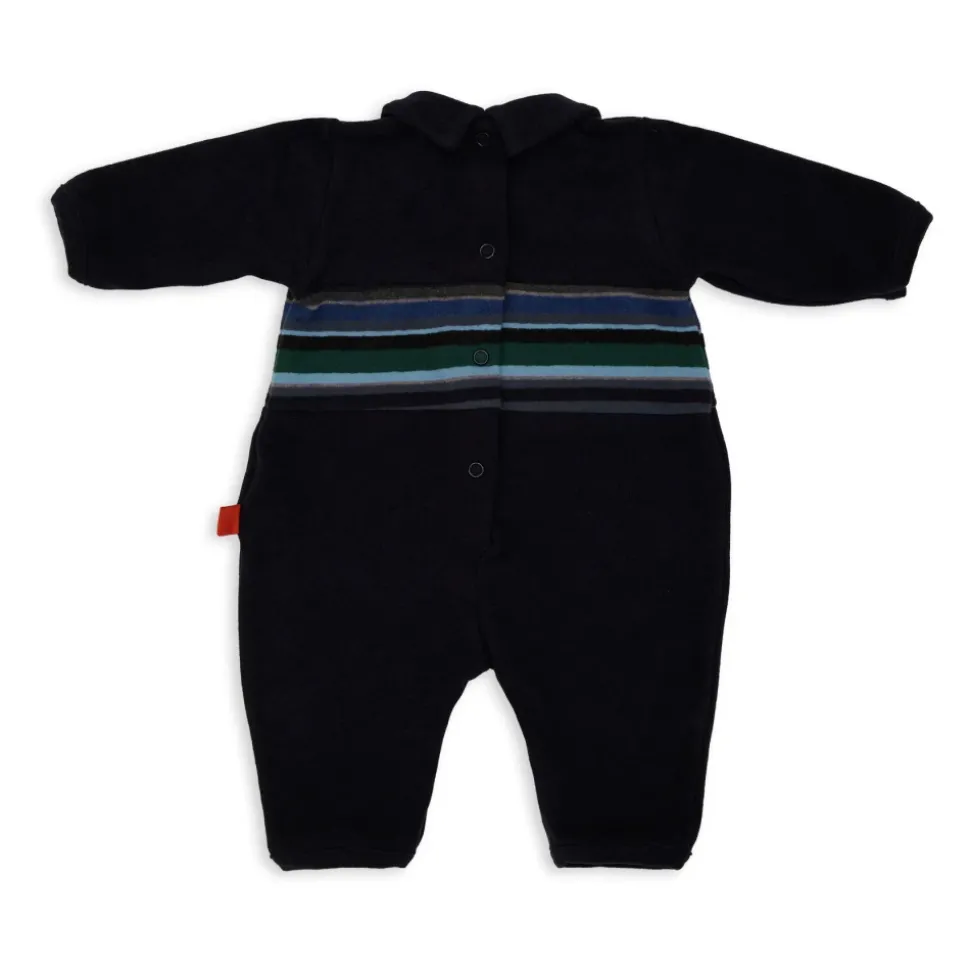Verrijk de stijl van je kleintje met deze GALLO Kids’ Blue Cotton Fleece Bodysuit uit Italië. Voorzien van een kleurrijke gestreepte band en handige drukknoopsluiting, voegt deze bodysuit een vleugje originaliteit toe aan hun garderobe.