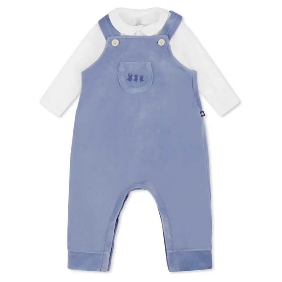 Kleed je kleintje in stijl met deze Petit Bateau blauwe geboorteset, bestaande uit een lichtblauwe chenille jumpsuit met schattige kuikens en een witte romper met lange mouwen en peter pan kraag. Gemaakt van 100% katoen. Machinewasbaar op 40°C.