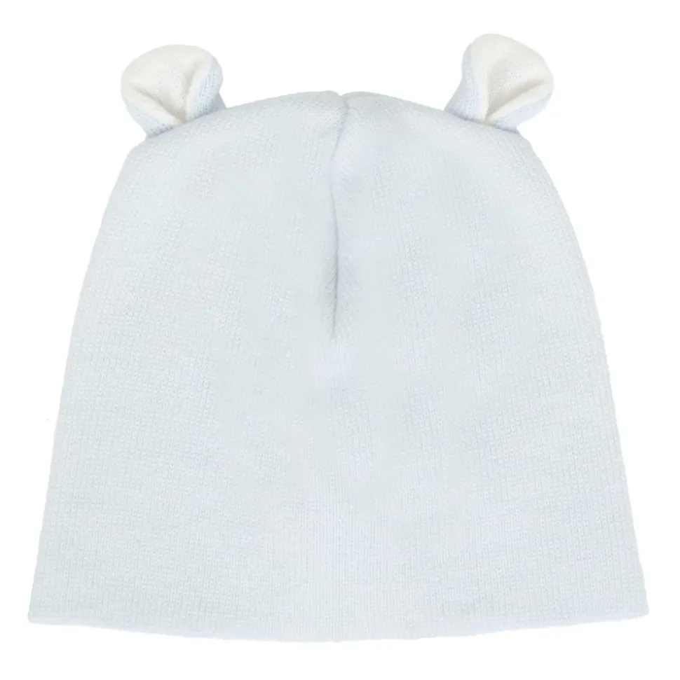 Little Bear lichtblauwe gebreide wollen muts met duifgrijze oren bovenop, gemaakt in Italië. 100% wol. Handwas.