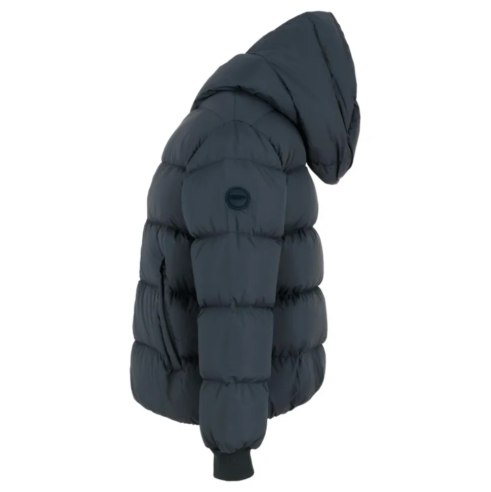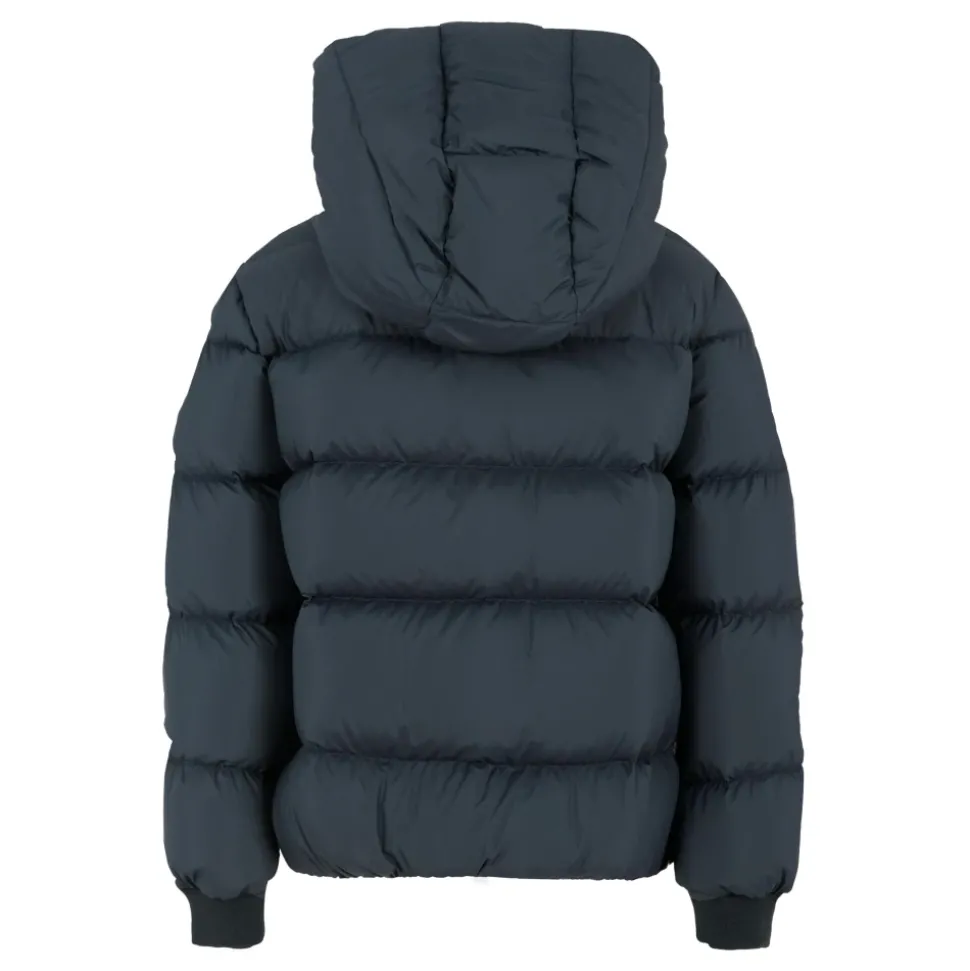 Houd je kleintje warm en stijlvol met deze zware blauwe donsjas van Colmar. Voorzien van lange mouwen, een capuchon, een rits aan de voorkant, zijzakken met rits, geribbelde manchetten en een elastische zoom. Compleet met een logopatch op de mouw. Gemaakt van 100% polyester. Machinewas op 30°C.