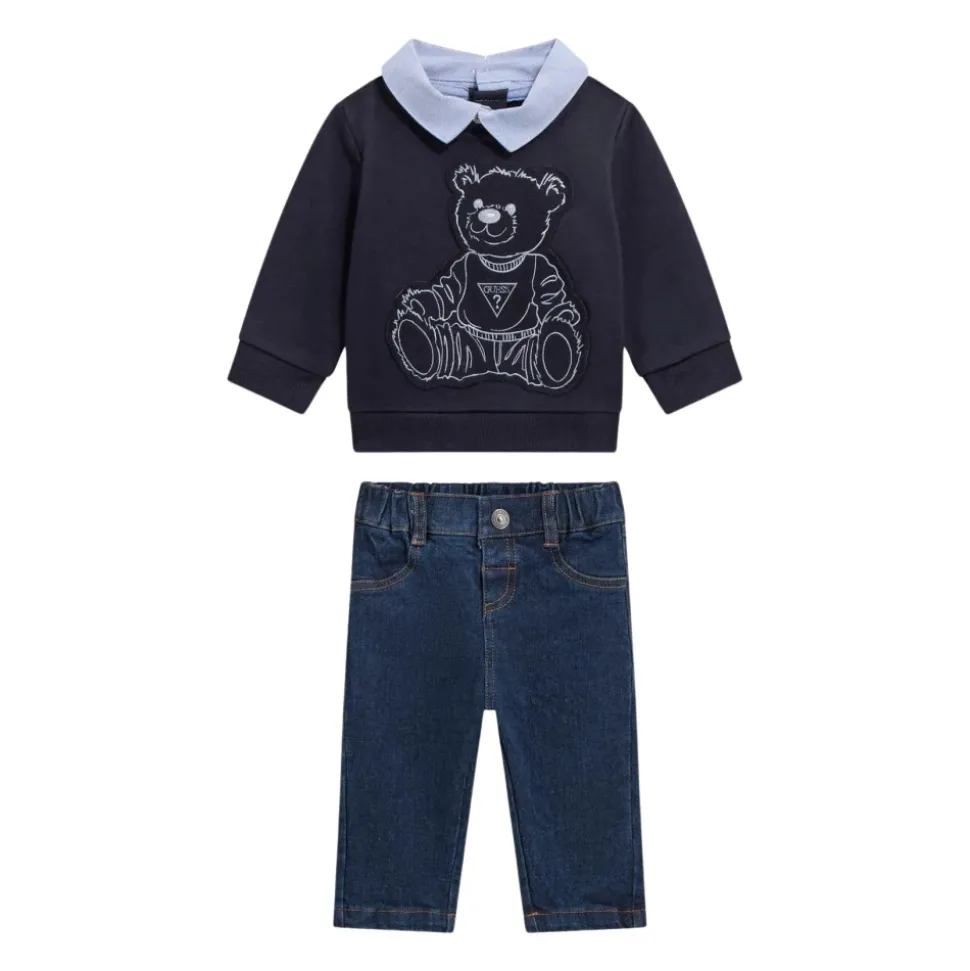 Kleed je kleine man in stijl met deze Guess hoodie en jeans set voor jongens, gemaakt van comfortabel katoen.