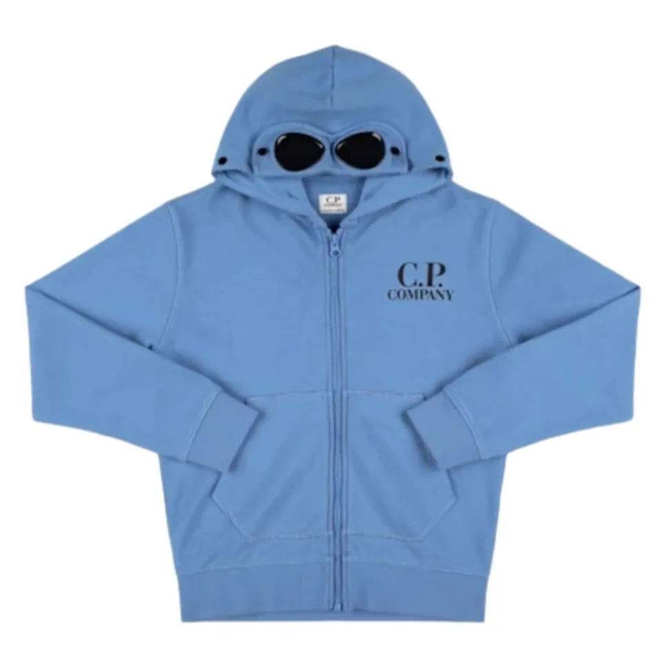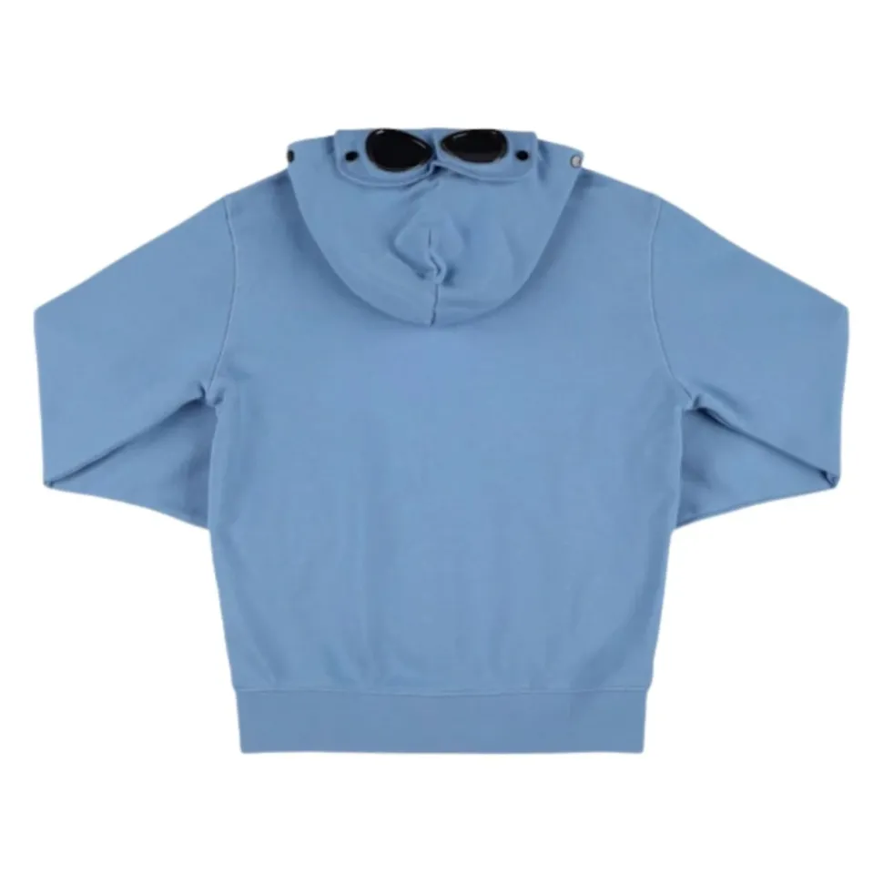 C.P. Company Kids blauwe sweatshirt met capuchon met verhoogde goggle-logo-applicatie, lange mouwen, twee zijzakken, reguliere pasvorm, rechte zoom. Gemaakt van 100% katoen.