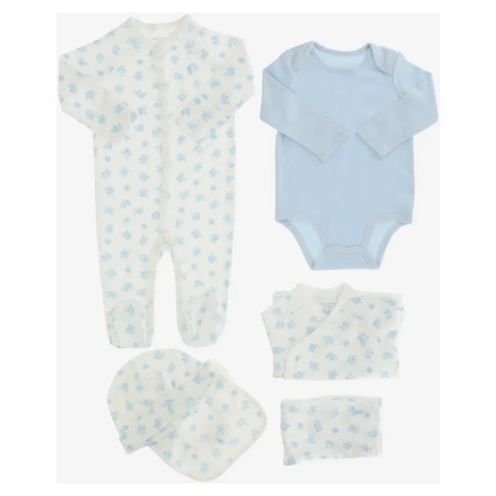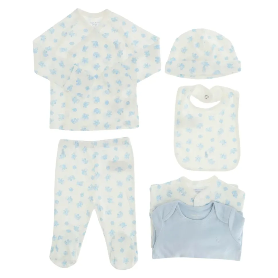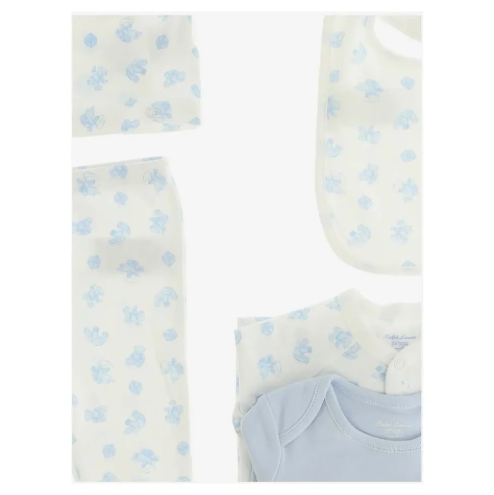 Maak kennis met de Polo Ralph Lauren blauwe katoenen geschenkset, een perfect ensemble voor stijl en comfort. Deze set bevat essentiële items met logo-borduring, ideaal om cadeau te geven. Belangrijkste kenmerken: Blauw | Katoen | Drukknoopsluiting | Elastische tailleband | Geborduurd logo | Lange raglanmouwen | Omgeslagen rand aan de muts | Afmetingen en pasvorm: Verkrijgbaar in maten voor 3 maanden (lengte 53-60 cm) en 6 maanden (lengte 62-68 cm) | Samenstelling en onderhoud: 100% katoen | Machinewas koud, droogtrommel laag.