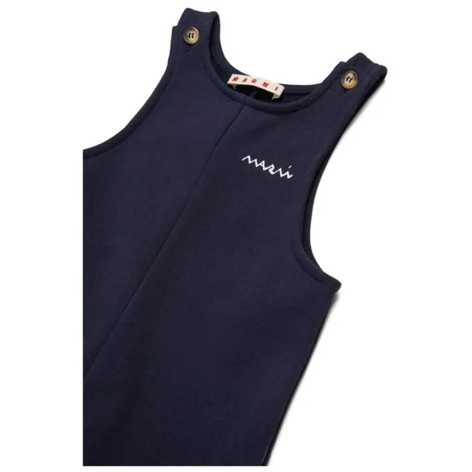 Kleed je kleintje in stijl met deze Marni blauwe tuinbroek van geborsteld katoen. Voorzien van knopen op de schouders, een gerimpelde zoom en een logoprint op de borst. Gemaakt van 100% katoen. Machinewasbaar op 30°C.