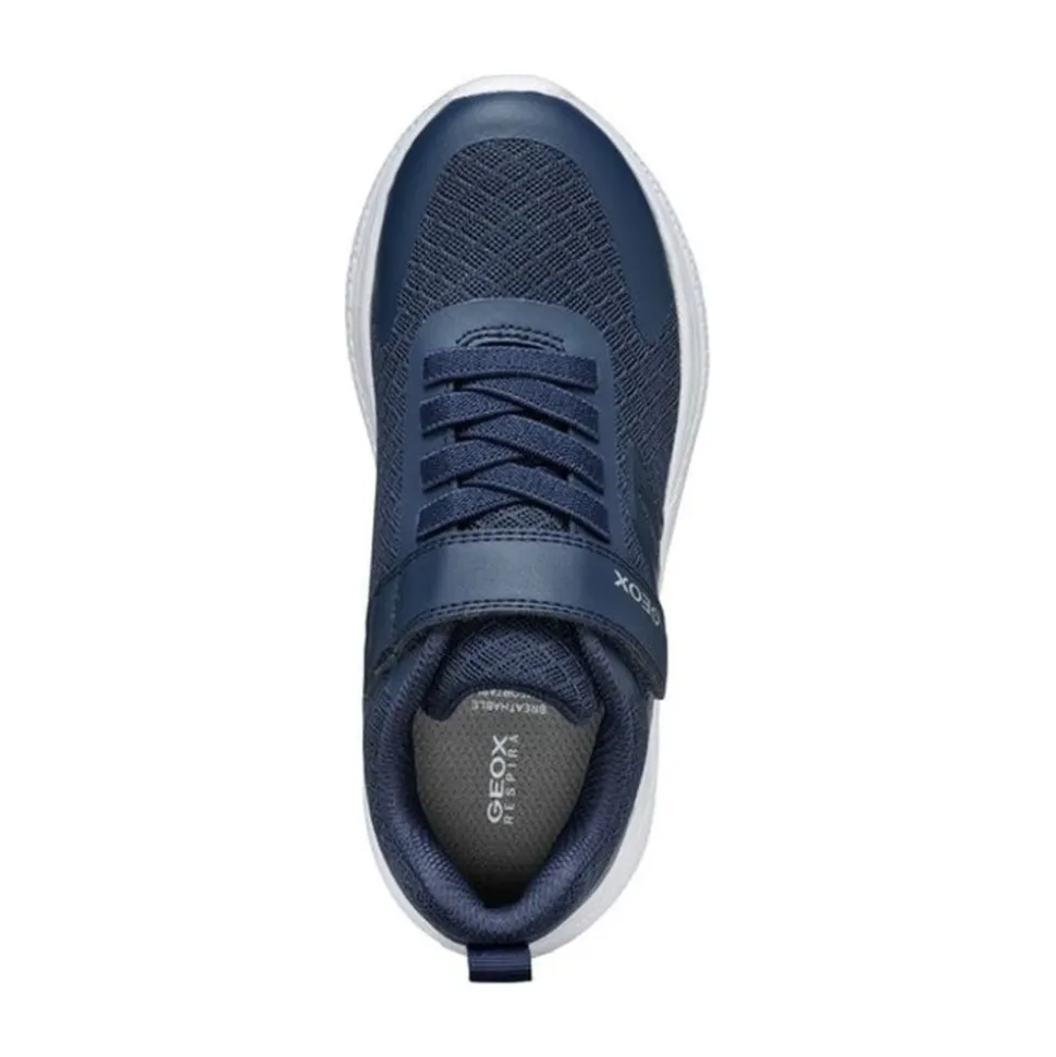 Geox Jongens Blauwe Sneakers – Kinderen Schoenen – Stijlvolle en comfortabele sneakers voor jongens van Geox in blauwe kleur. Gemaakt van een mix van polyester, thermoplastisch polyurethaan en polyurethaan. Perfect voor actieve kinderen. Productcode: J45GBA 01450 C4002.