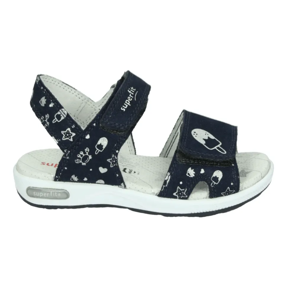 Ontdek deze meisjessandalen van Superfit, model 6134, in een stijlvol blauw dessin. Met een wijdte 4 pasvorm, vast voetbed, rubberen zool en bovenmateriaal van nubuck. Gemaakt van leer voor comfortabel en dragen.