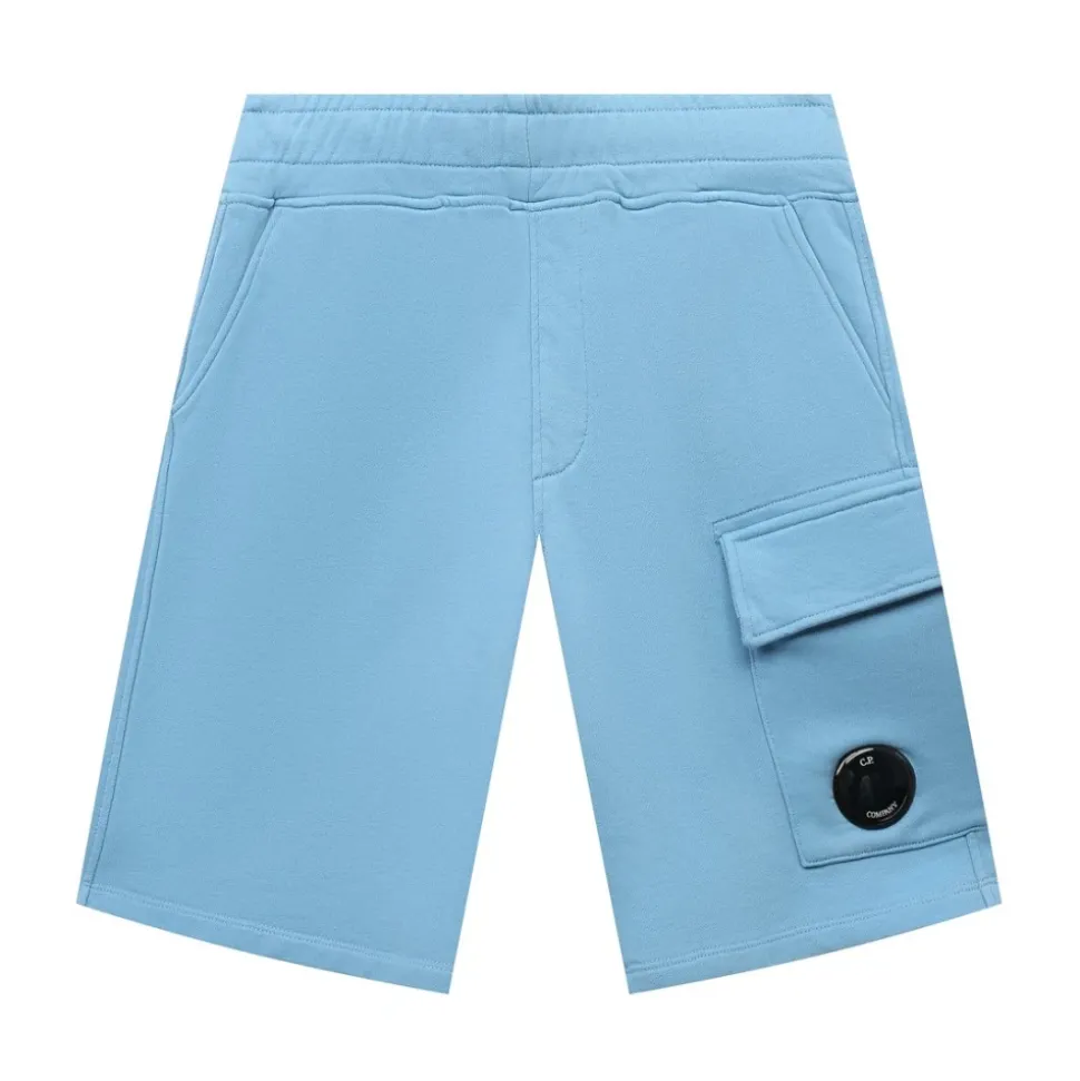C.P. Company Shorts Lichtblauw voor jongens, met een zak op het been, patch logo op het been en zakken aan de achterkant.