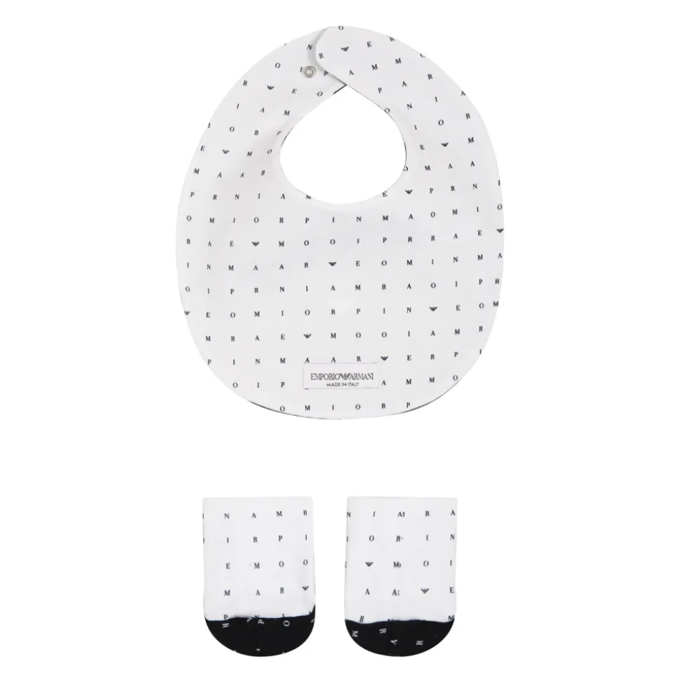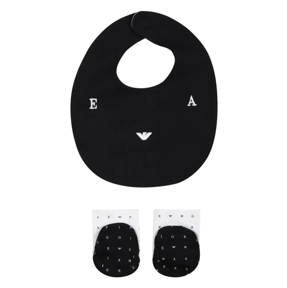 Kleed je kleintje in stijl met deze Emporio Armani Kids Blue Set. De set bevat een blauwe slab met een iconisch eaglet-ontwerp en automatische knoopsluiting, gecombineerd met witte en blauwe sokken met een allover-logo. Gemaakt van 100% katoen, is deze set zowel stijlvol als comfortabel. Machinewasbaar op 30°C.