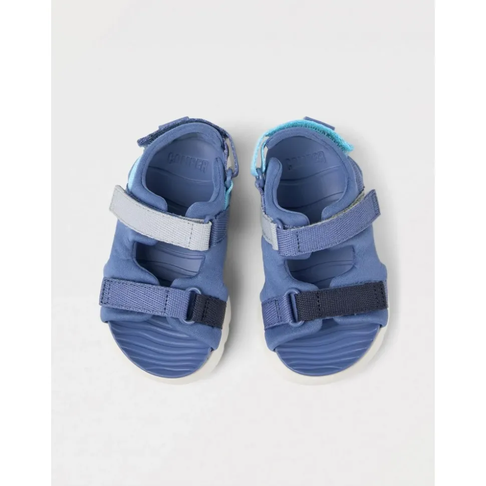 Ontdek de stijlvolle en comfortabele Camper-schoenen voor kinderen in het blauw. Ontworpen met zowel mode als functie in gedachten, bieden deze sandalen een veilige pasvorm en de hele dag comfort, perfect voor actieve kinderen. Textiel bovenwerk en rubberen zool.