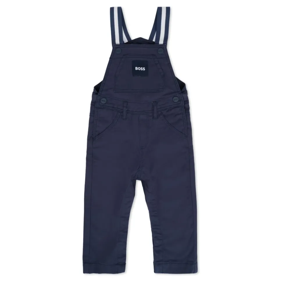 Kleed je kleintje in stijl met deze blauwe Hugo tuinbroek. Voorzien van verstelbare elastische bandjes, drukknopen aan de voorkant, zijkanten en tussen de benen, riemlussen, zijzakken en een kleine voorzak met een logopatch. Gemaakt van 97% katoen en 3% elastaan. Machinewas op 30°C.