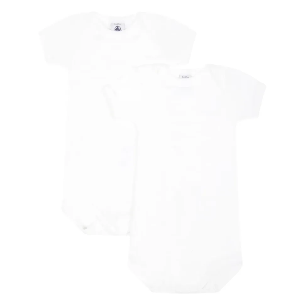Kleed je kleintje in stijl met deze witte katoenen set van Petit Bateau. De set bestaat uit twee rompertjes met korte geribbelde mouwen en drukknopen tussen de benen voor eenvoudig verschonen. Gemaakt van 100% katoen, is deze set zowel comfortabel als gemakkelijk te onderhouden met machinewas op 40°C.