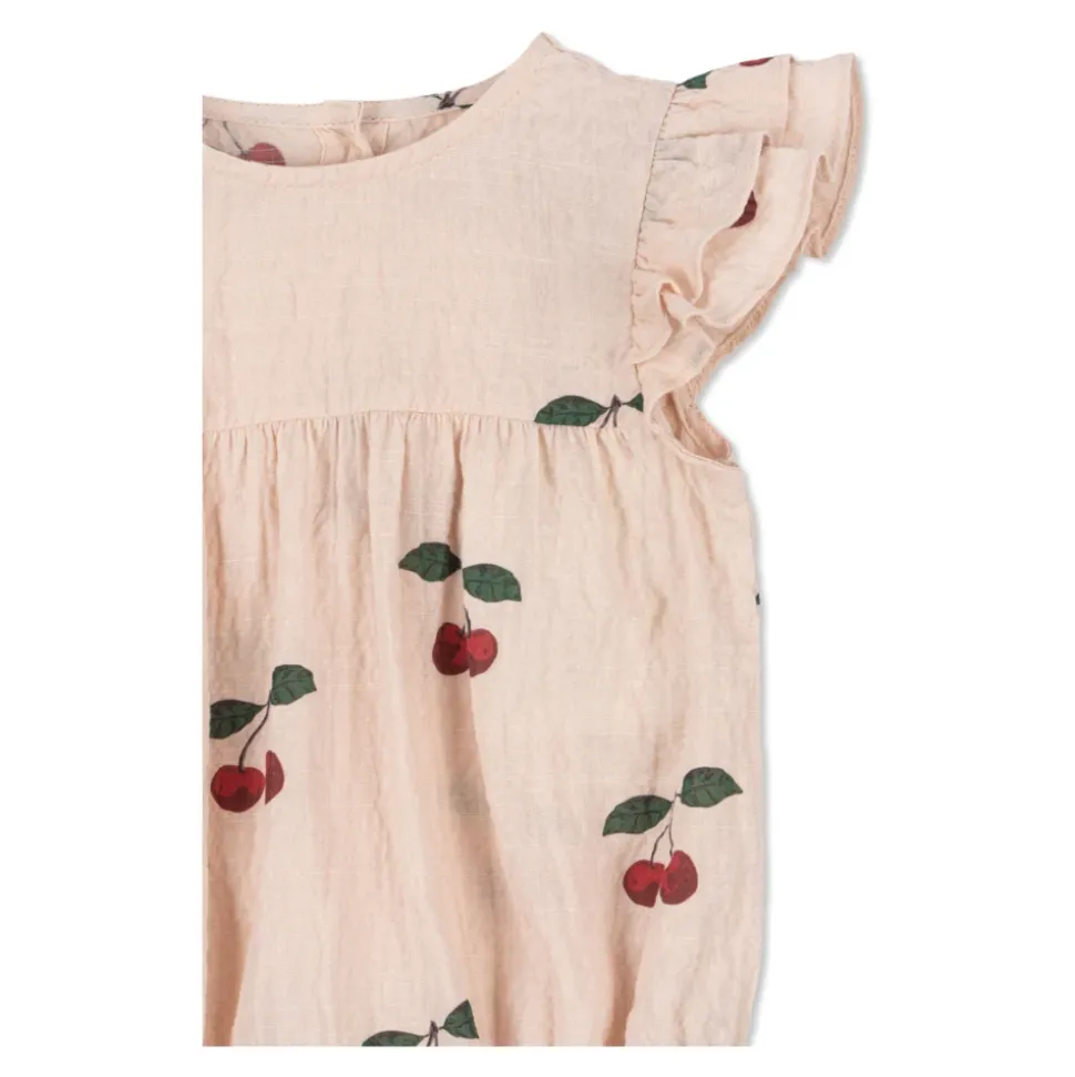 BODY MET KERSPATROON is een verfijnde keuze voor de jongste liefhebbers van subtiele stijl. De delicate roze tint harmonieert prachtig met het levendige motief van rode kersen, verrijkt met accenten van groene bladeren. De unieke snit met korte gerimpelde mouwen en zorgvuldig afgewerkte ribbels garandeert niet alleen een uitzonderlijke uitstraling, maar ook dagelijks draagcomfort. In het hart van het ontwerp bevindt zich een zachte, ademende stof gemaakt van katoen, die zowel veiligheid als comfort biedt voor de gevoelige huid van uw kind. Drie decoratieve knopen aan de achterkant maken het aankleden gemakkelijk, terwijl praktische drukknopen in het kruis de functionaliteit verder verhogen. De body is gemaakt door KONGES SLØJD, een merk dat bekend staat om zijn precisie vakmanschap en buitengewone, originele patronen, waarbij eersteklas kwaliteit en een aanpak absolute prioriteiten zijn. WAAROM ZOU U DIT PRODUCT KOPEN? * Uniek, natuurlijk geïnspireerd kersenmotief * Zacht en ademend katoen * Praktische en comfortabele sluitingen * Zorgvuldig vervaardigde details * Toewijding aan milieuzorg