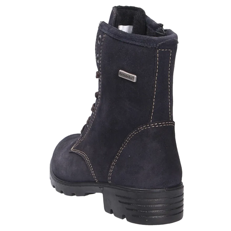 Ricosta winterlaars gemaakt van zacht suèdeleer, ontworpen voor betrouwbare bescherming bij koud weer met een warme voering en verstelbare pasvorm. Belangrijkste kenmerken: Blauw | Blauw | Suèdeleer | Waterafstotend membraan (RicostaTex) | Waterafstotend membraan (GaborTex) | Ademend leer | Schokabsorberende PU-loopzool | Uitneembare binnenzool | Verstelbare vetersluiting | Warme voering | Fluweelzacht suède oppervlak | Ronde neus | Blokhak (ca. 1 cm) | Medium schachtwijdte | Afmetingen & pasvorm: Hakhoogte: ca. 1 cm | WMS-breedte M (medium) | Normale maatvoering | Medium schachtwijdte past op normale kuitbreedtes | Samenstelling & onderhoud: Suèdeleer | PU-zool | RicostaTex-membraan | GaborTex-membraan
