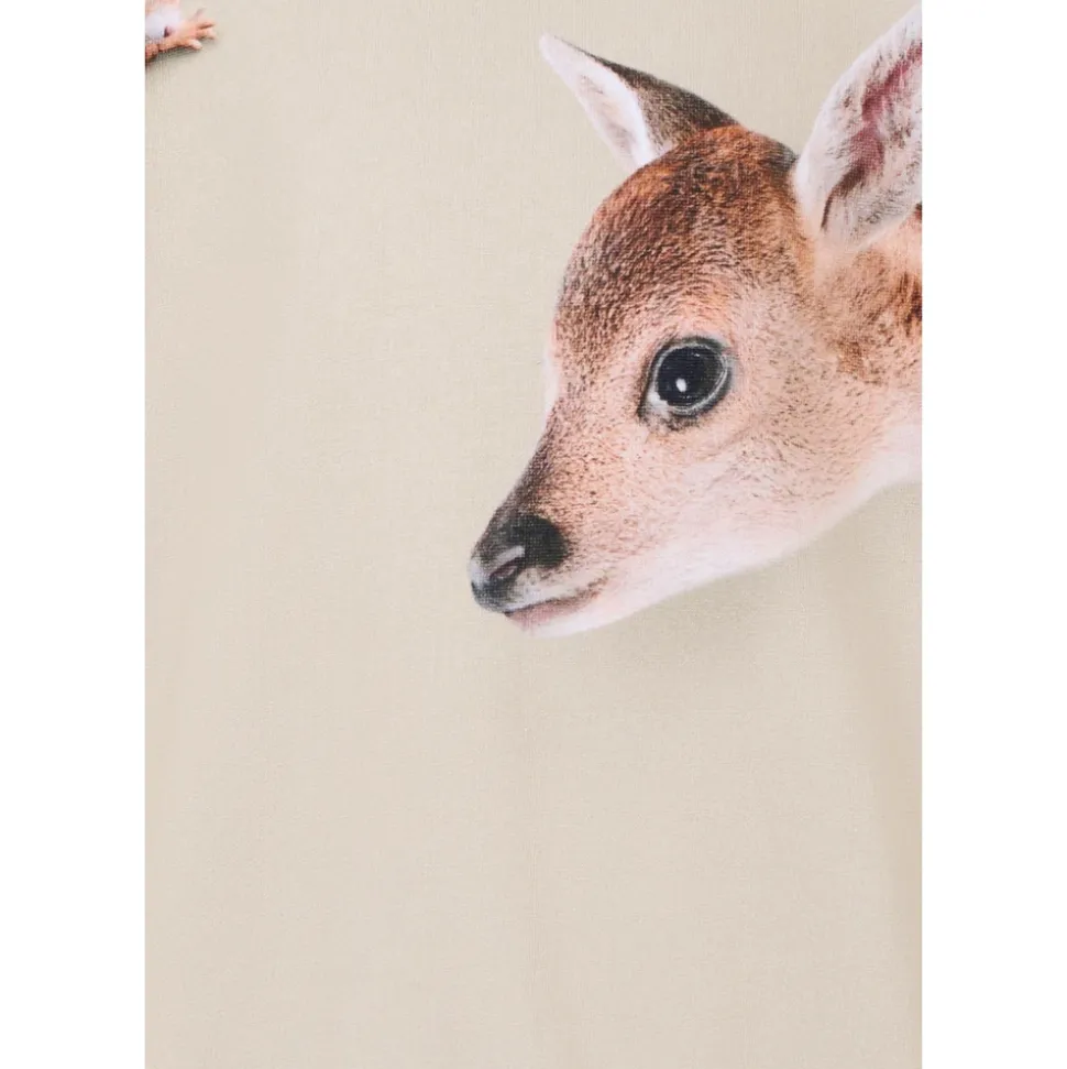 Blijf gezellig en stijlvol met deze beige sweatshirt van Molo. Gemaakt van GOTS-gecertificeerd katoenfleece, heeft het een bosdierenprint op de voor- en achterkant. Deze sweatshirt heeft lange mouwen, een geribbelde ronde hals, manchetten en zoom. Gemaakt van 100% katoen, kan het in de machine worden gewassen op 30°C.