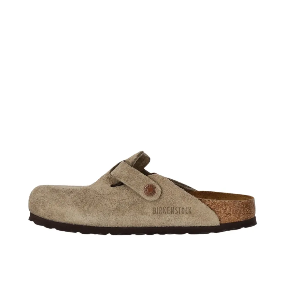De Birkenstock Boston Soft Footbed Narrow Fit biedt klassiek klompencomfort met een zacht, dempend voetbed en een ondersteunende kurkconstructie. De productafbeelding is indicatief. Belangrijkste kenmerken: Taupe | Suède | Gedempt zacht voetbed | Ondersteunend kurken voetbed | Lichtgewicht zool | Verstelbare riem met metalen gesp | Met suède gevoerde binnenzool | Kurken voetbed | Klomp silhouet | Bovenwerk van fluweelzacht suède | Logo gesp detail | Afmetingen & pasvorm: Hoogte: 1 cm | Smalle pasvorm | Samenstelling & onderhoud: Bovenkant: Suède | Binnenzool: Suède | Voetbed: Kurk | Buitenzool: Rubber