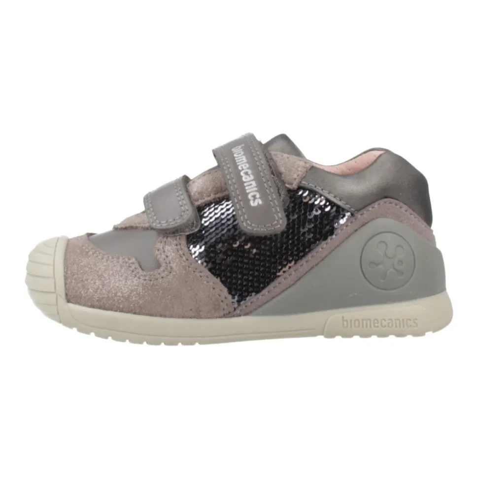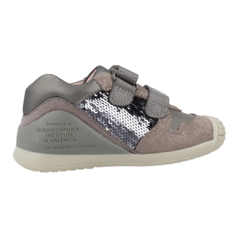 Biomecanics Botin Metalizado combineert een metallic afwerking met een zachte, flexibele constructie ontworpen voor dagelijks gebruik. Het benadrukt ademend vermogen en comfort door een micro-geperforeerde voering. Belangrijkste kenmerken: Grijs | Leer en synthetisch materiaal | Micro-geperforeerde, thermoregulerende voering | Klittenbandsluiting | Gelijmde constructie | Rubberen zool | Metallic afwerking | Afmetingen en pasvorm: Platte binnenzool (geen plantaire ondersteuning) | Samenstelling en onderhoud: Bovenkant: Leer en synthetisch materiaal | Voering en binnenzool: Textiel (microvezel, micro-geperforeerd) | Zool: Rubber