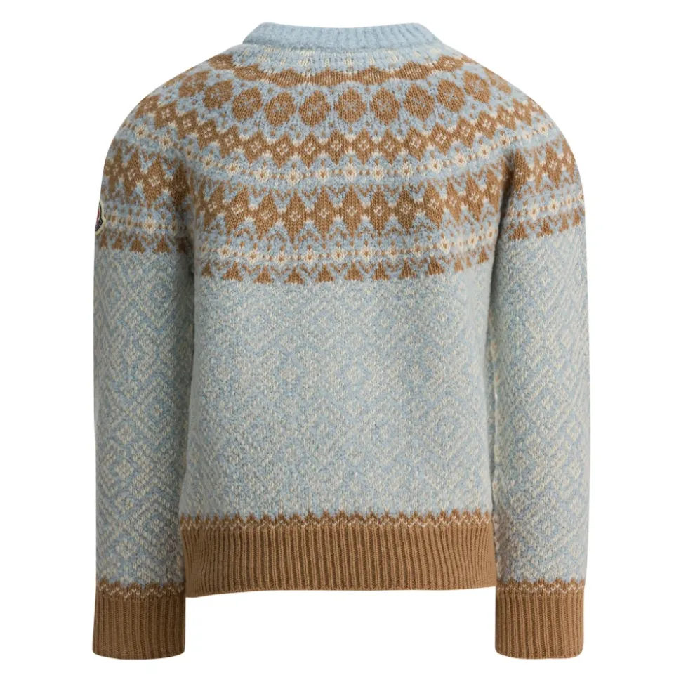 De Moncler Bouclé Wolmix Trui is een middelzware knit die ontworpen is om in laagjes te dragen, waarbij bouclé scheerwol en polyamide worden gecombineerd voor zacht, isolerend comfort. Belangrijkste kenmerken: Lichtblauw | Scheerwol | Middelzware knit | Zacht en | Isolerende warmte | Geschikt voor laagjes | Comfortabel om te dragen | Ronde hals | Jacquardmotief | Bouclé textuur | Samenstelling & onderhoud: Basismateriaal: 90% Scheerwol, 10% Polyamide | Juk: 93% Scheerwol, 7% Polyamide | Handwas; niet bleken; niet in de droogtrommel; strijken op max. 110°C zonder stoom; niet chemisch reinigen; niet professioneel nat reinigen; plat drogen in de schaduw.