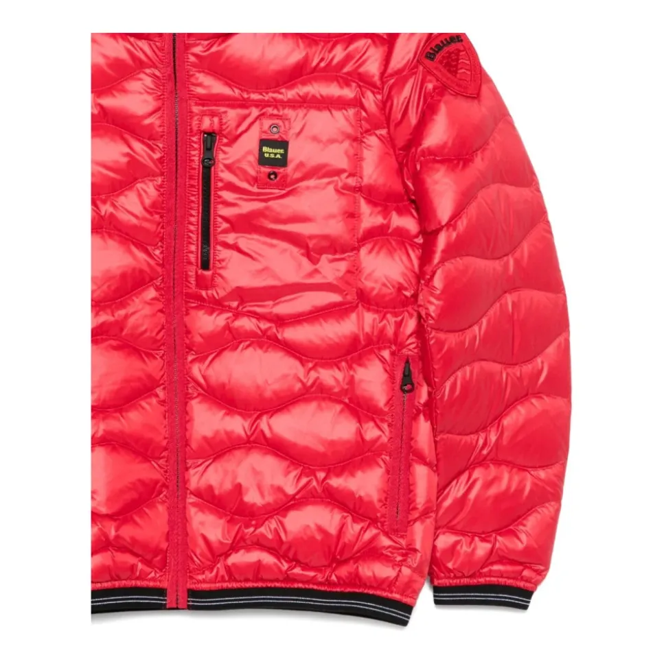 De Blauer Brinton Jacket combineert lichtgewicht donsisolatie met een glanzende, golvend doorgestikte buitenlaag voor betrouwbare warmte en een verzorgde, alledaagse look. Belangrijkste kenmerken: Rood | Polyamide | Isolerend (met dons gevuld) | Lichtgewicht, niet-bulky | Vaste capuchon | Verborgen ritssluiting aan de voorkant | Zakken met ritssluiting aan de voorkant | Elastische manchetten en zoom | Binnenzakken | Golfstiksel | Glanzende nylon afwerking | Logopatch | Samenstelling & onderhoud: Buitenlaag: 100% polyamide | Vulling: 90% dons, 10% veren | Lees de onderhoudsinstructies van de fabrikant.
