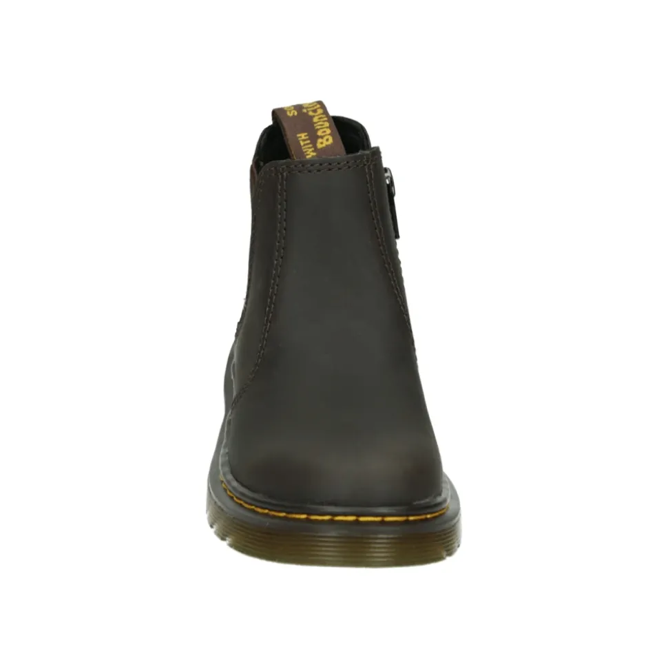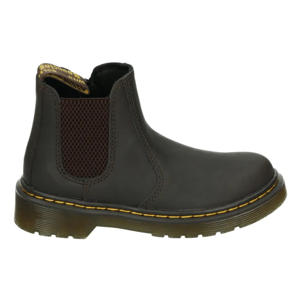 Ontdek deze stijlvolle Dr. Martens jongenslaarzen in donkerbruin. Het model 2976 J DARK BROWN heeft een wijde pasvorm, vast voetbed, rubberen zool en bovenmateriaal van glad leer. Gemaakt van synthetisch materiaal.
