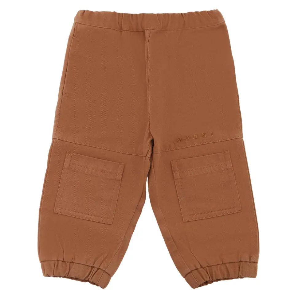 Upgrade de garderobe van je kind met deze Marni bruine katoenen broek. Voorzien van een elastische taille, zijzakken, voorzakken en elastische enkels, zijn deze broeken zowel stijlvol als comfortabel. Compleet met een geborduurd logo op de voorkant. Gemaakt van 100% katoen. Machinewas op 30°C.
