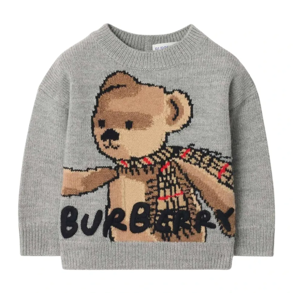Burberry sweater in lichtgrijs gemêleerd, gebreid voor warme laagjes en dagelijks gebruik. Belangrijkste kenmerken: Grijs | Lichtgrijs gemêleerd | Wol | Knitwear | Gemêleerde afwerking | Samenstelling & onderhoud: 98% wol, 2% merinowol