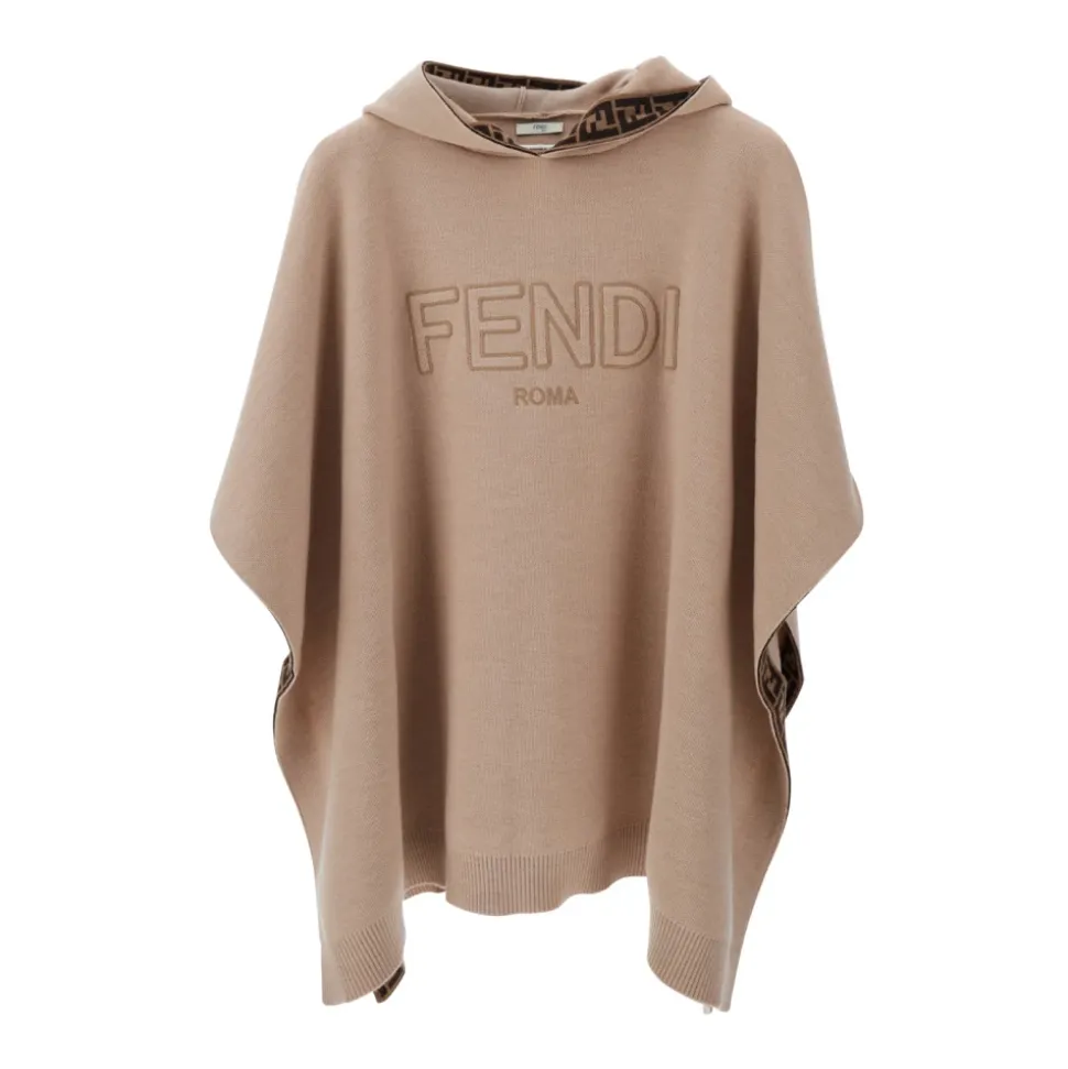 Verrijk de stijl van je kleine meid met deze Fendi Beige Hooded Cape met Logo Lettering op de voorkant. Gemaakt van wol, is deze lichte jas perfect voor de modebewuste vrouw.