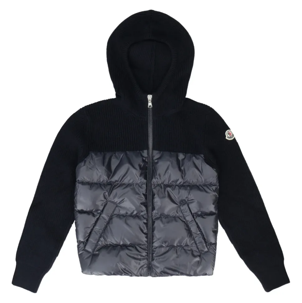 De Moncler Cardigan met Gewatteerd Voorpand combineert het comfort van breiwerk met een donsgevulde voorkant voor extra warmte. Het combineert de look van een vest met isolerende padding voor koelere dagen. Belangrijkste kenmerken: Blauw | Wol | Isolerende donsvulling | Warmte | Met capuchon | Twee voorzakken | Donsgevuld voorpand | Gewatteerd voorpand | Cardigan silhouet | Samenstelling & onderhoud: 90% dons, 10% veren | 100% Polyester | 100% Wol