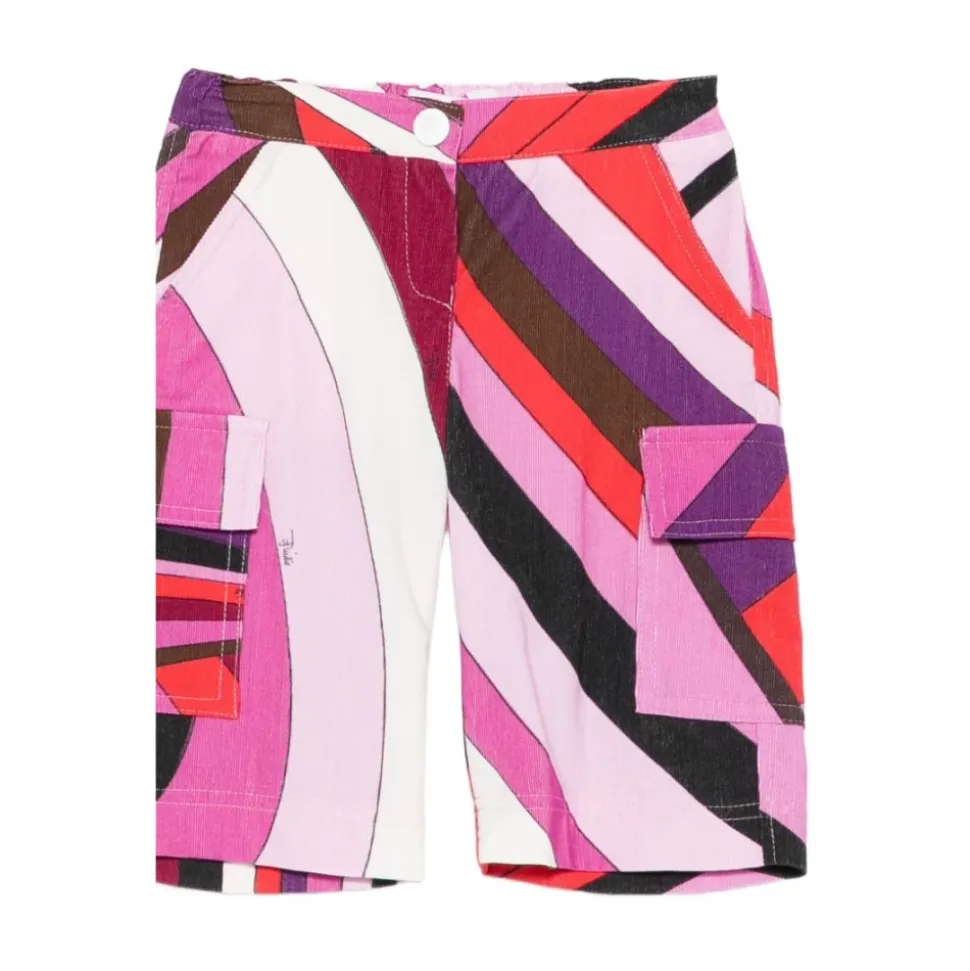 De Pucci Cargo Shorts combineren een gedurfde geometrische roze print met praktische details. Het ontwerp combineert cargozakken en een knoopsluiting voor een functionele, opvallende short. Belangrijkste kenmerken: Multicolor | Fuchsia | Cargozakken | Knoopsluiting | Geometrische print | Cargo-stijl silhouet