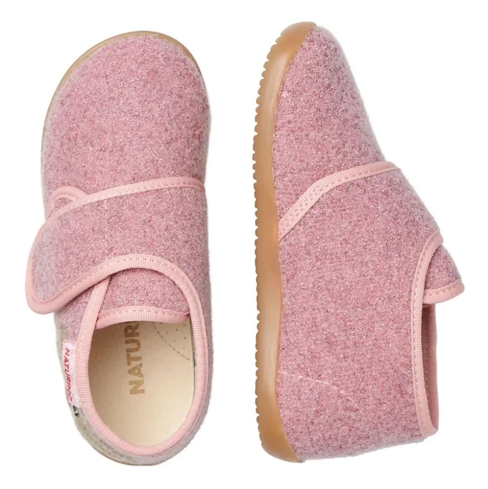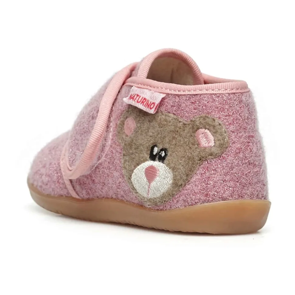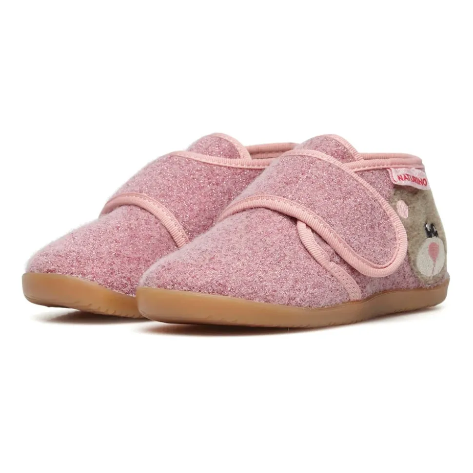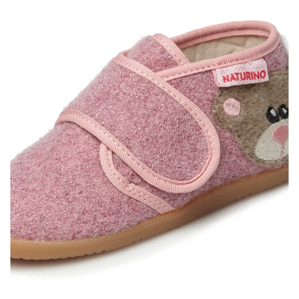 Naturino CARILLON Pantoffels combineren een zachte textielconstructie met een speelse berenpatch voor dagelijks comfort. Ze zijn voorzien van een leren binnenzool en een antislip rubberen zool voor stabiel, comfortabel dragen thuis of op de crèche. Belangrijkste kenmerken: Roze | Textiel | Antislip rubberen zool | Zachte, comfortabele constructie | Klittenbandsluiting | Leren binnenzool | Gekleurde berenpatch aan de zijkant | Samenstelling & verzorging: Textiel | Leer | Rubber